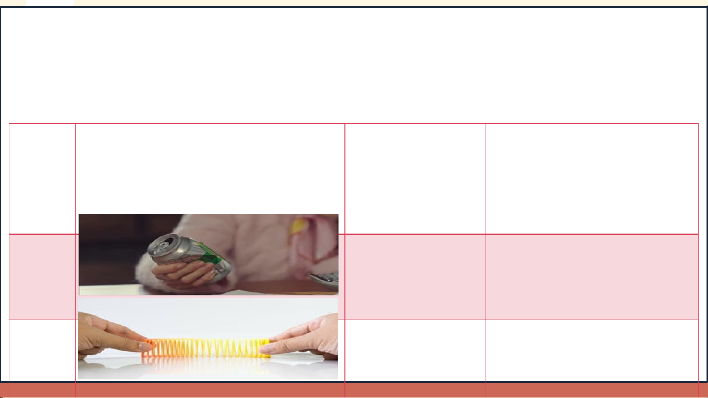 biết đó là biến dạng đàn hồi hay không đàn hồi? STT Hoạt động Tác dụng Phân loại biến của lực làm dạng vật biến dạng 1 Biến dạng ✅ không đàn hồi. 2 Biến dạng đàn ✅ hồi.