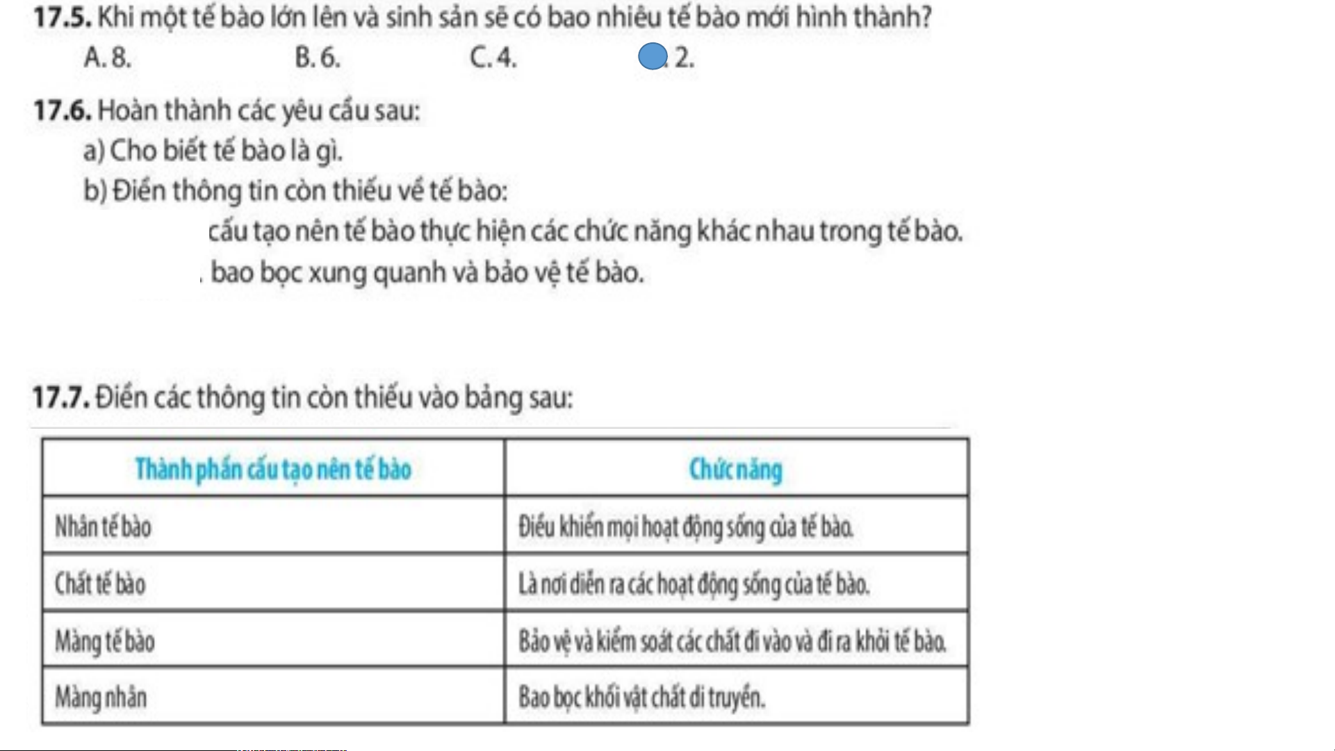 • Thay thế cho các tế bào già, các tế bào bị tổn thương. (4) II. BÀITẬP