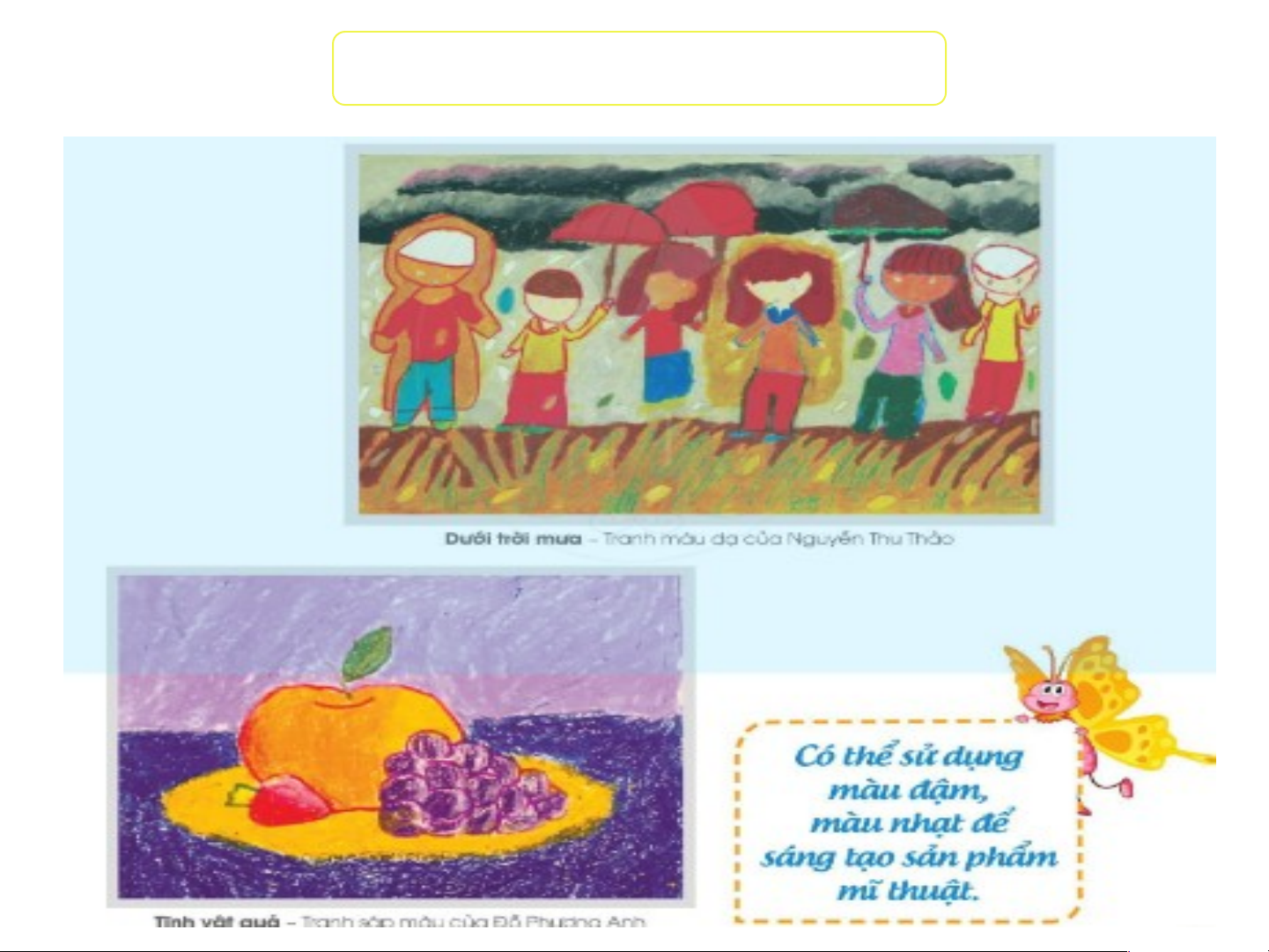 + Trong bức tranh xé dán của em, hình ảnh nào có màu đậm, màu nhạt?