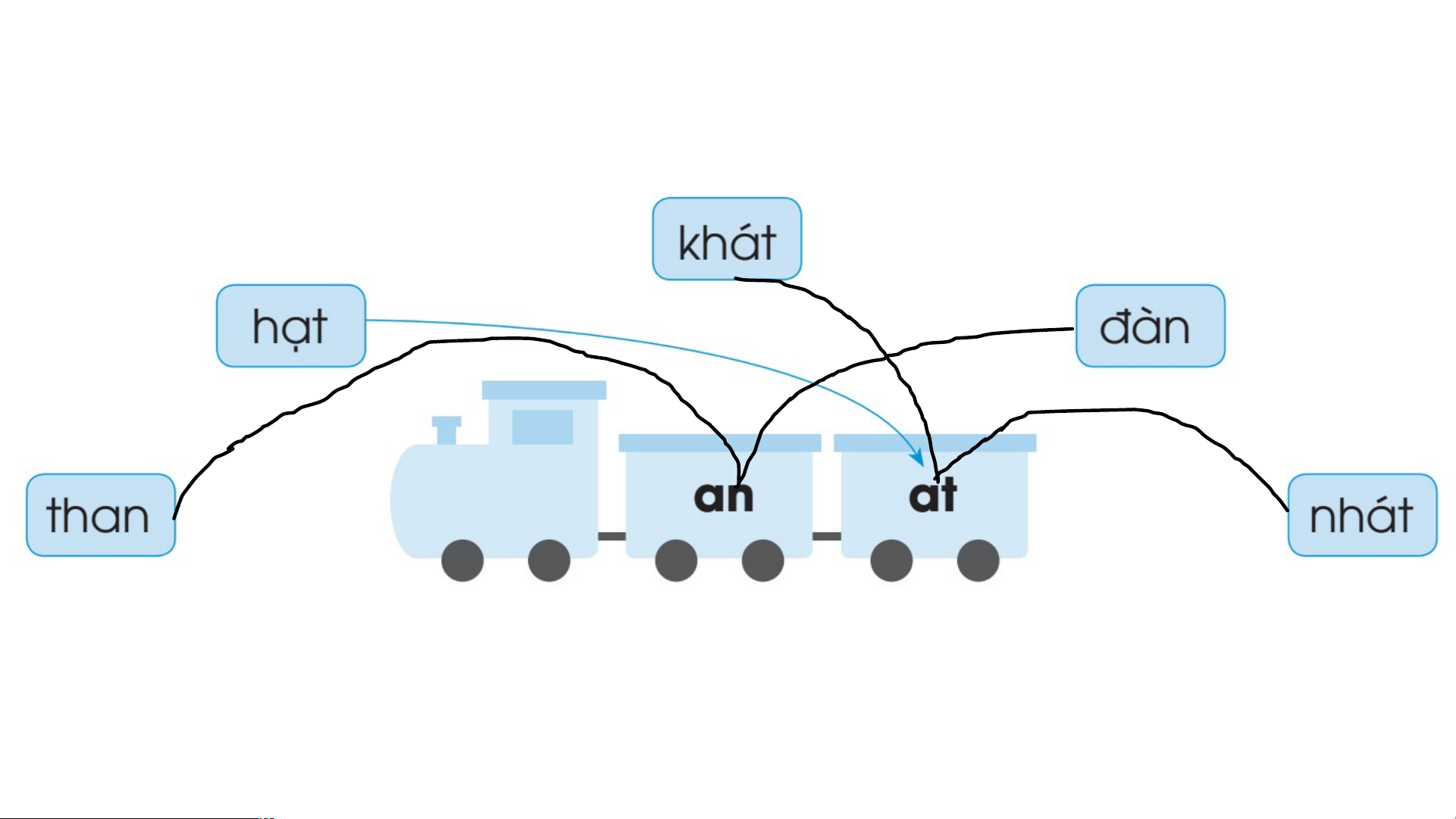 Xeáp nhöõng tieáng coù cuøng vaàn vaøo toa taøu phuø hôïp: Noái: coù san hoâ coù haït deû an an an an an at at at at at bàn là bàn là bát bát chè chè