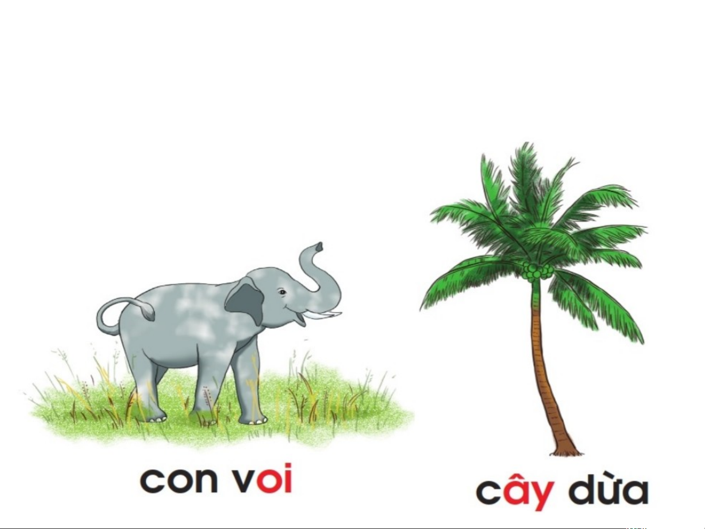 Thứ ngày tháng năm 2021 Tiếng Việt Bài 100: oi- ©y oi ©y o i © y 1. Làm quen con voi voi v oi 1. Làm quen c©y dõa c©y c ©y