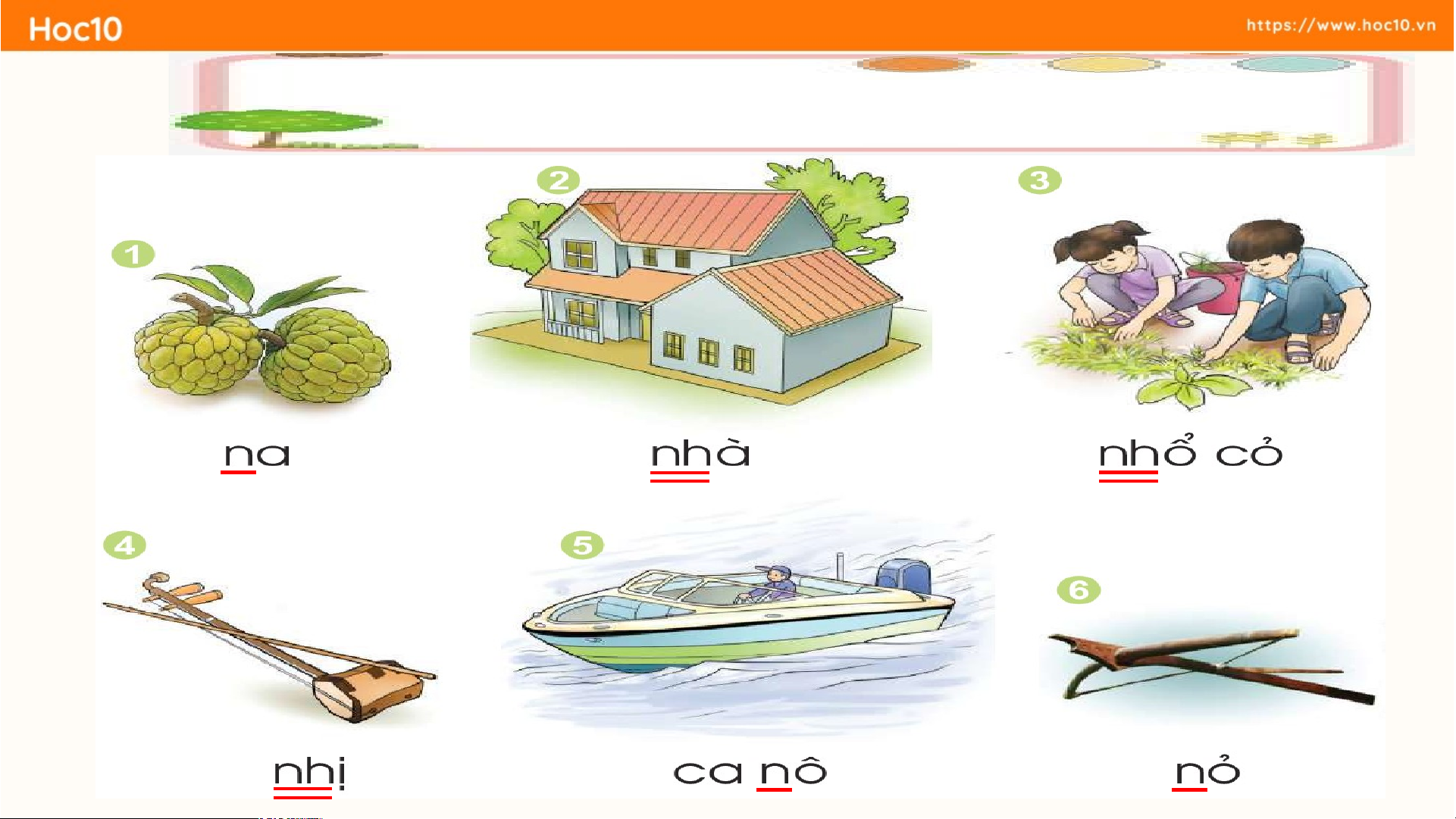Thứ …ngày…tháng…2022 TIẾNG VIỆT Bài 19: n – nh Khởi động 1 2 Trò chơi Đuổi côn trùng 5 4 6 3 mẹ khe đá cá kho cá mè khỉ Mẹ có cá kho khế. Bài 19: n - nh nơ n nho nh n N n nh Nh nh