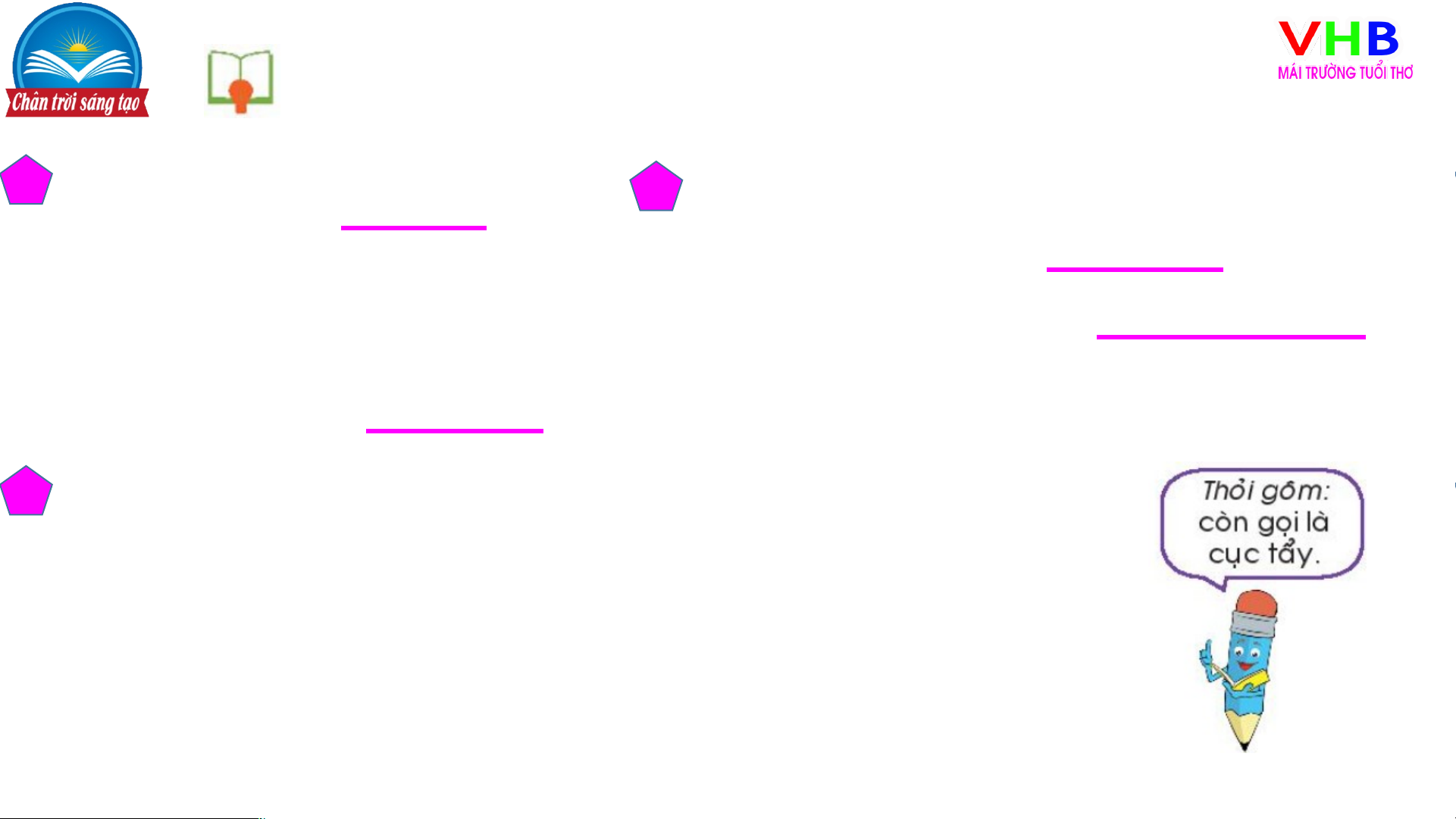 thơ là: thước, thỏi gôm, sách, vở, bút
