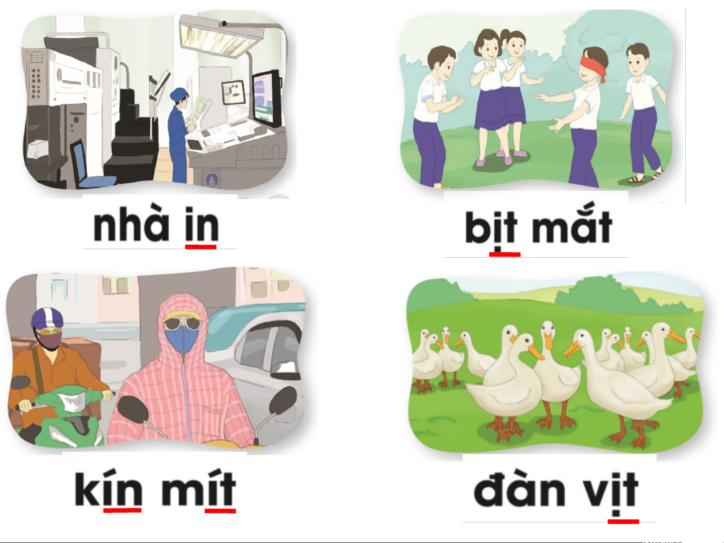 cả các âm, tiếng, từ , câu sau. Bịt pin it mắt in vịt mít đàn vịt
