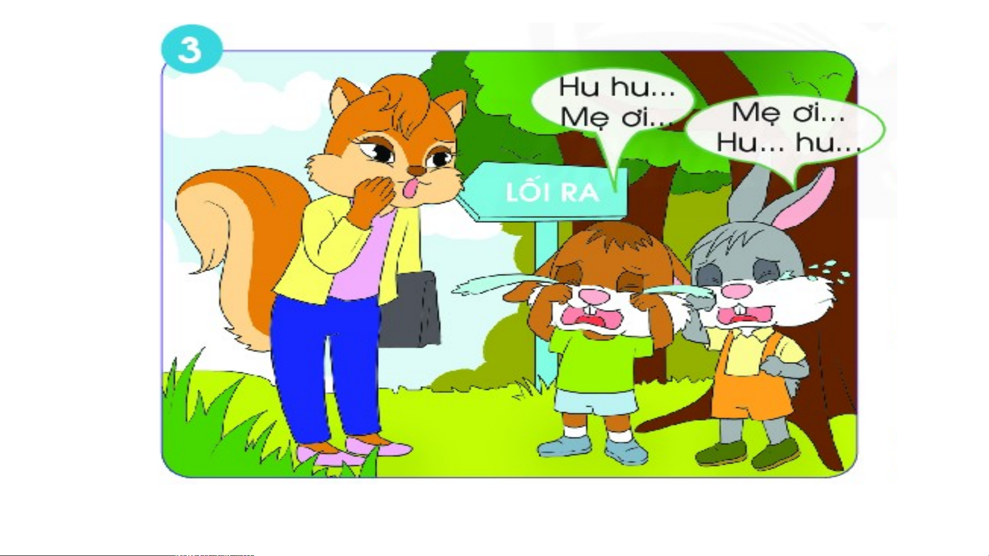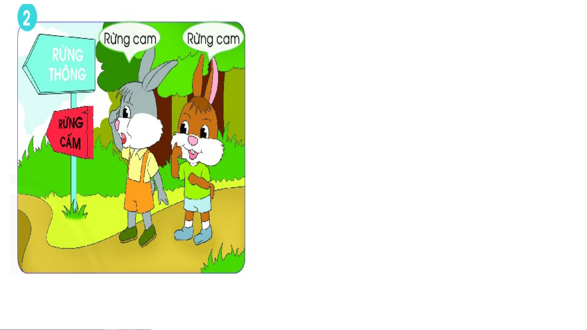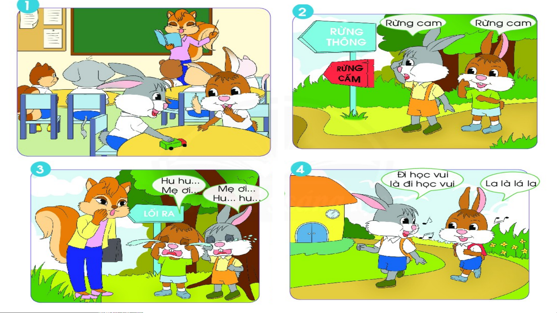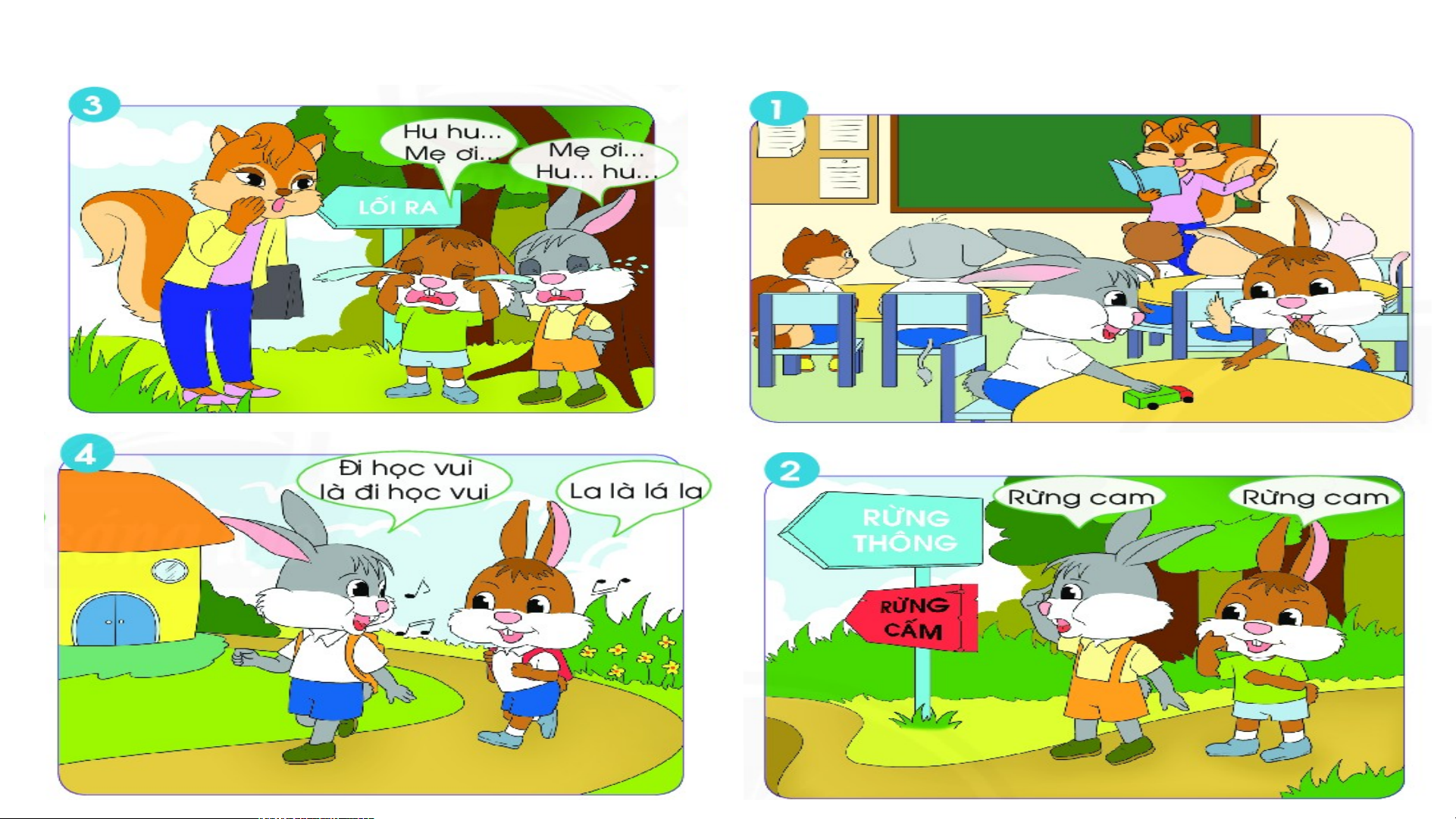 Gặp biển “Rừng cấm” Đọc thành “Rừng cam” Rồi tìm khắp chốn Chạy nhảy chán chê Cam thì không thấy Quên cả lối về. Coâ soùc.......... Cả hai sợ hãi Nước mắt chực sa Cô sóc bắt gặp Đưa chúng về nhà Rồi cô mới bảo