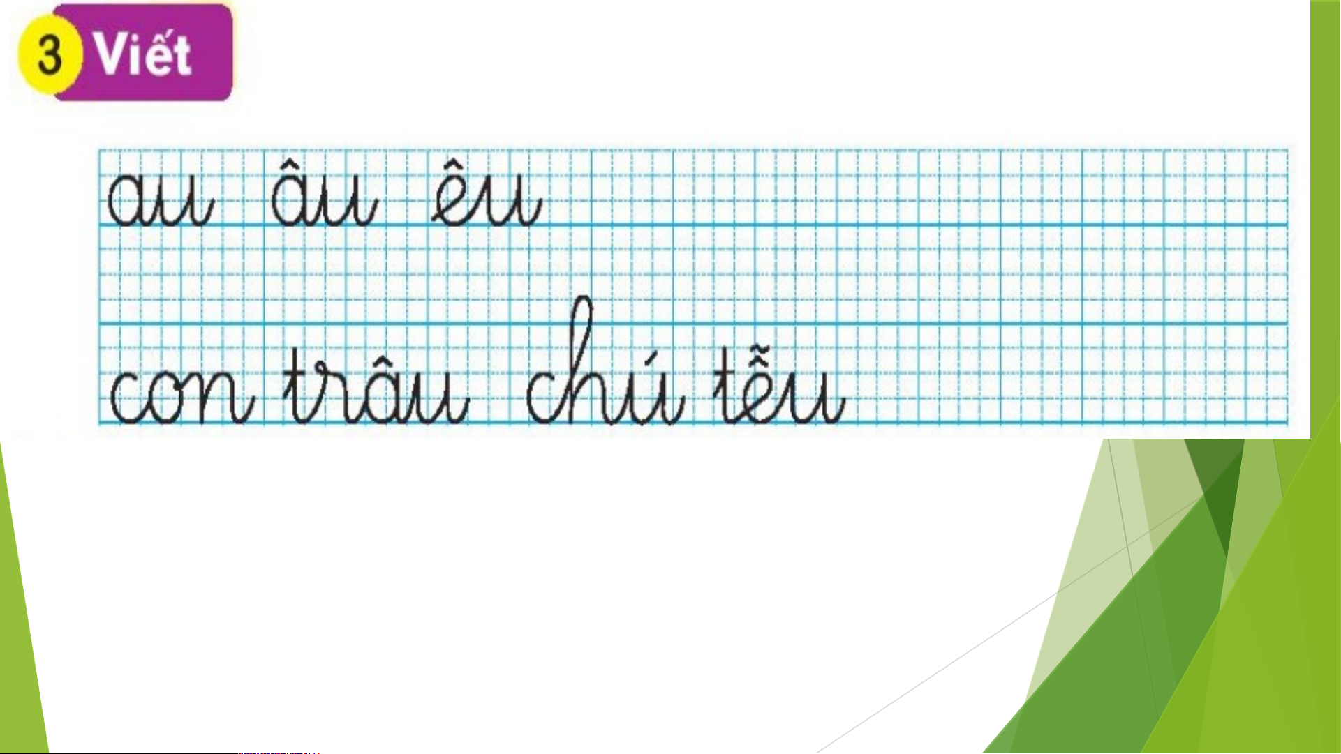 MÁI TRƯỜNG TUỔI THƠ Xin pheùp au aâ eâ u s au u sau cau taø ba ga kheâ reâ u àu con áu u u rau chuù cuû traâu teãu