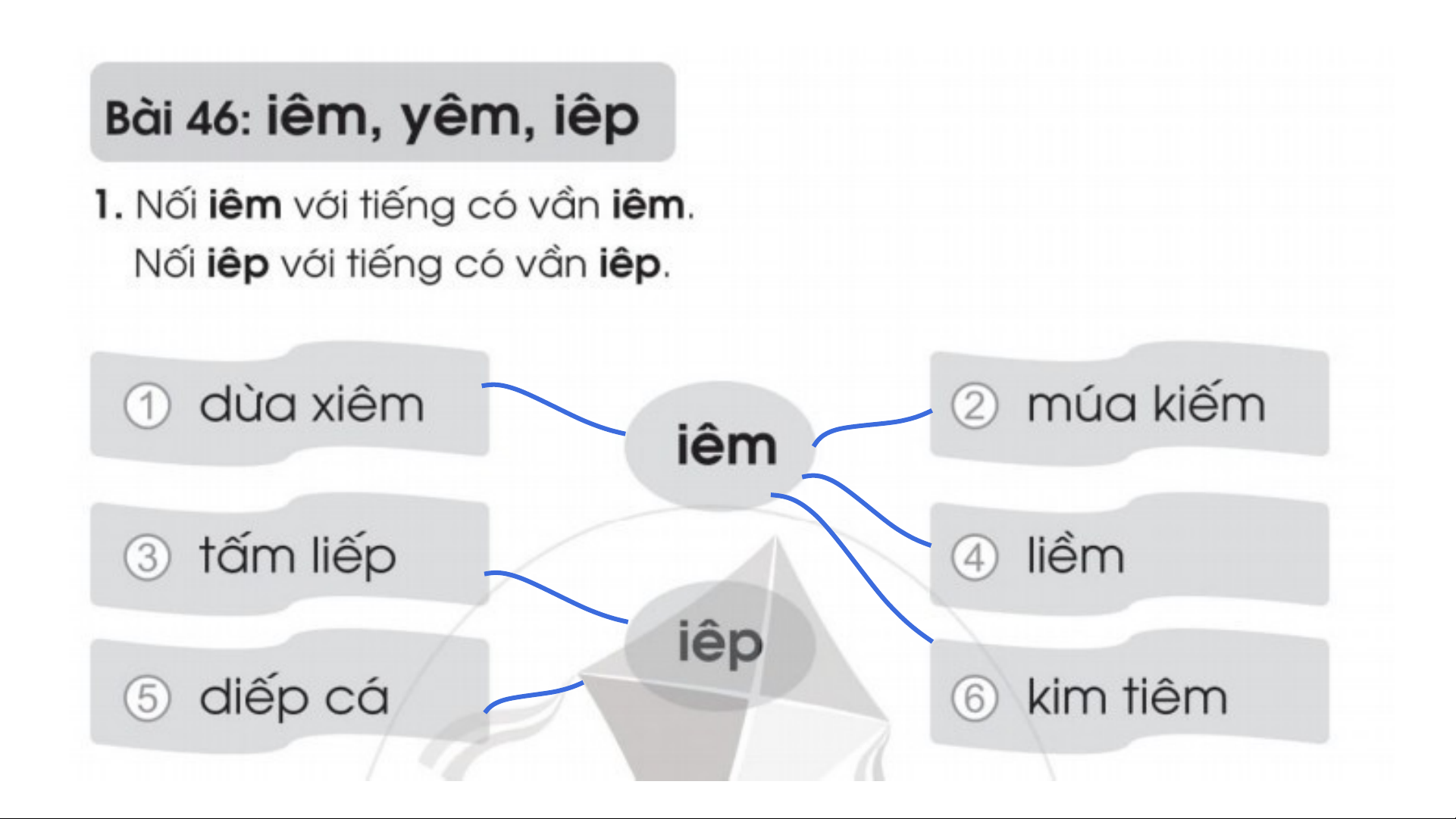 Giáo án điện tử Tiếng việt 1 bài 46 Cánh diều: Học vần: Iêm, yêm, iêp