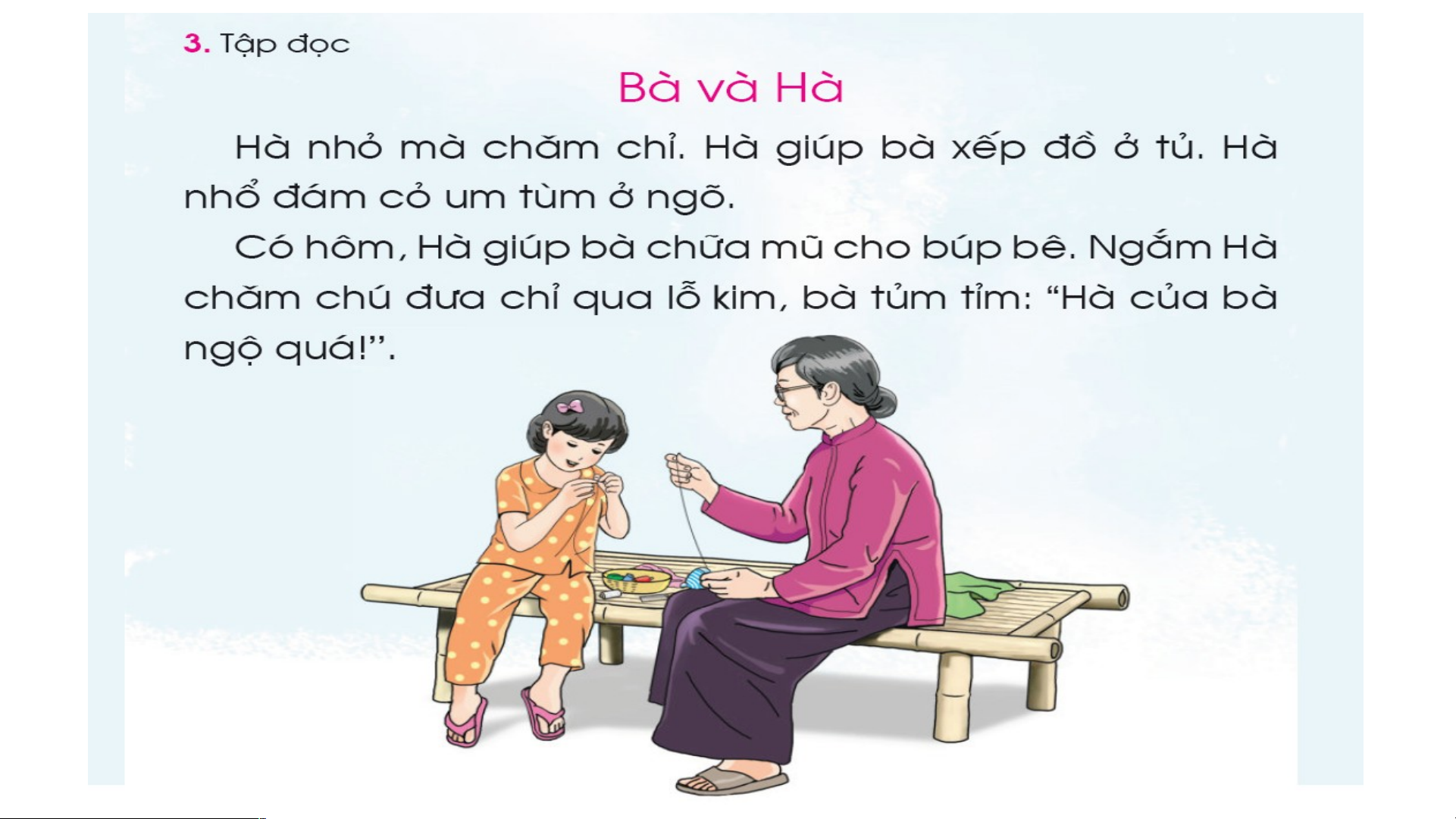 thấy cử động đôi môi một cách kín đáo LUYỆN ĐỌC Luyện đọc từ ngữ : chăm chỉ búp bê um tùm tủm tỉm 1 2 3 5 4 6 1 2 TÌM HIỂU BÀI