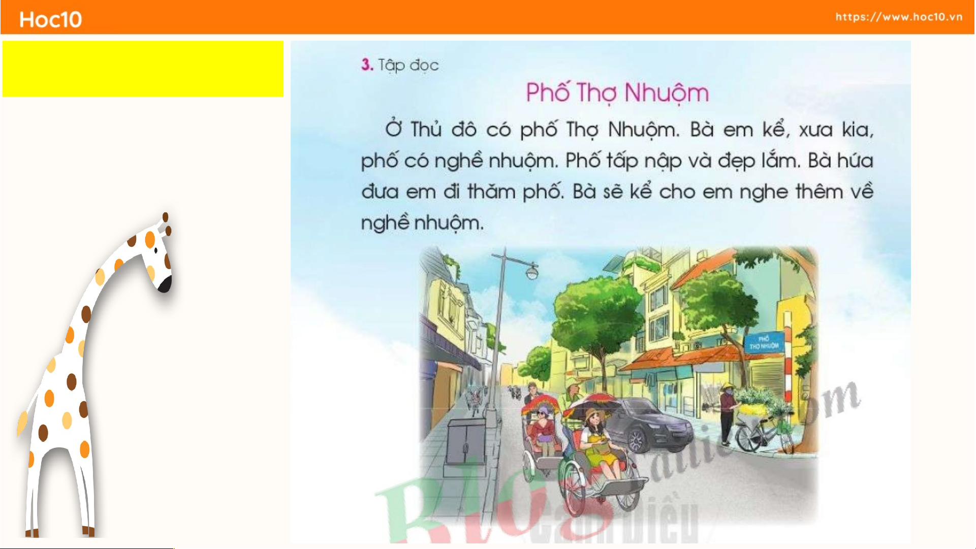 phố. Bà sẽ kể cho em nghe thêm về nghề nhuộm. phố Thợ Nhuộm tấp nập nghề nhuộm 2 2.. T T ậ ậ p p đọ đọ c c Phố Thợ Nhuộm 1 2