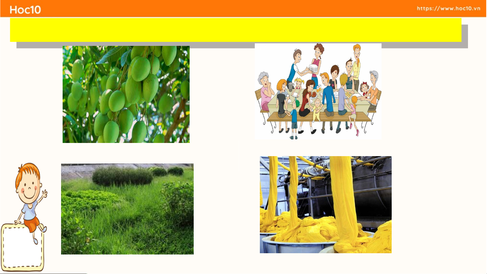 bờ - uôm - buôm - huyền - buồm Ngh Ngh ỉ giải l ỉ giải ao lao 2 2 . T . Tiiến ến g n g n à à o có v o có v ần ần uô uô m m ? ? T Tiiến ến g n g n ào có ào có vần vần u u m m ? ? 1. quả muỗm 2. sum họp 3. um tùm 4. nhuộm uôm sum họp quả muỗm um nhuộm um tùm Tập đọc 3. Tập đọc 2 2.. T T ậ ậ p p đọ đọ c c Phố Thợ Nhuộm
