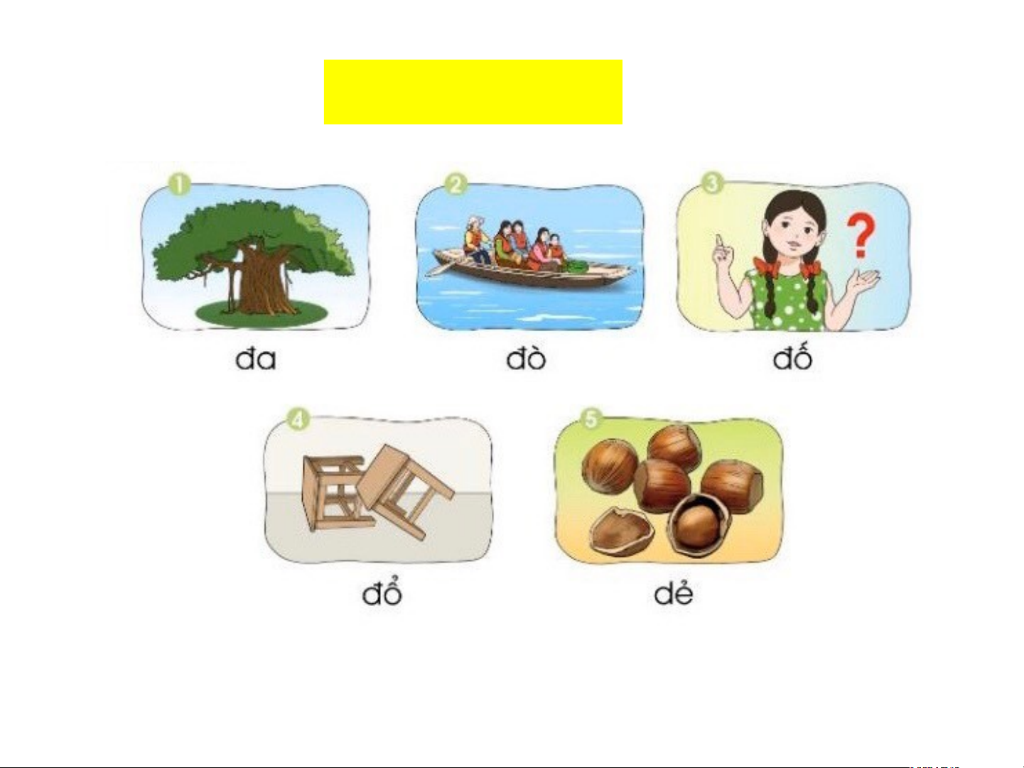 Thứ ngày tháng năm 2020 Tiếng Việt Bài 7: đ - e đ e 1. Làm quen đe 1. Làm quen 1. Làm quen đờ- e- đe Thư giãn 2.Tiếng nào có âm đ ? 3. Tiếng nào có âm e? 4. Tập đọc BẮT ĐẦU 10 1 0$ 50 20$ 50 100$ 10$ 50$ 20$ 150$ đe đò đa ve Dẻ