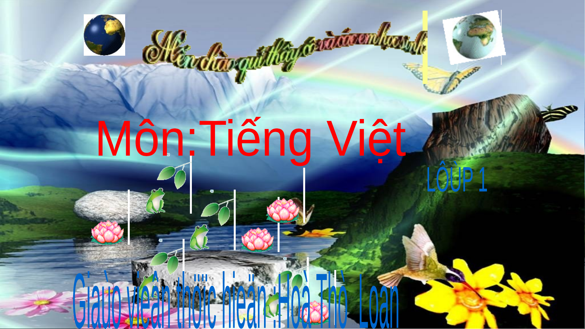 Treân maøn hình coâ coù 3 boâng hoa, moãi boâng hoa