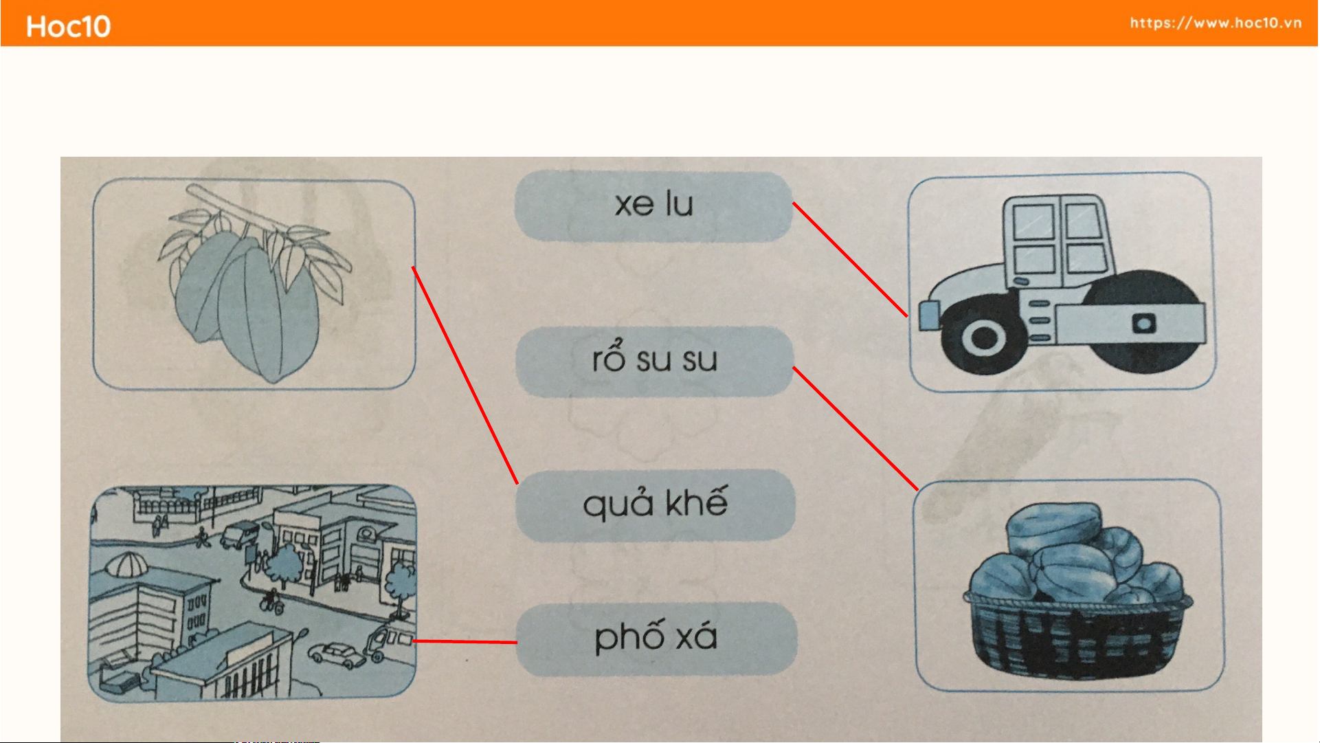 Bài 3: Đọc các từ ngữ. Nối từ ngữ với hình thích hợp.