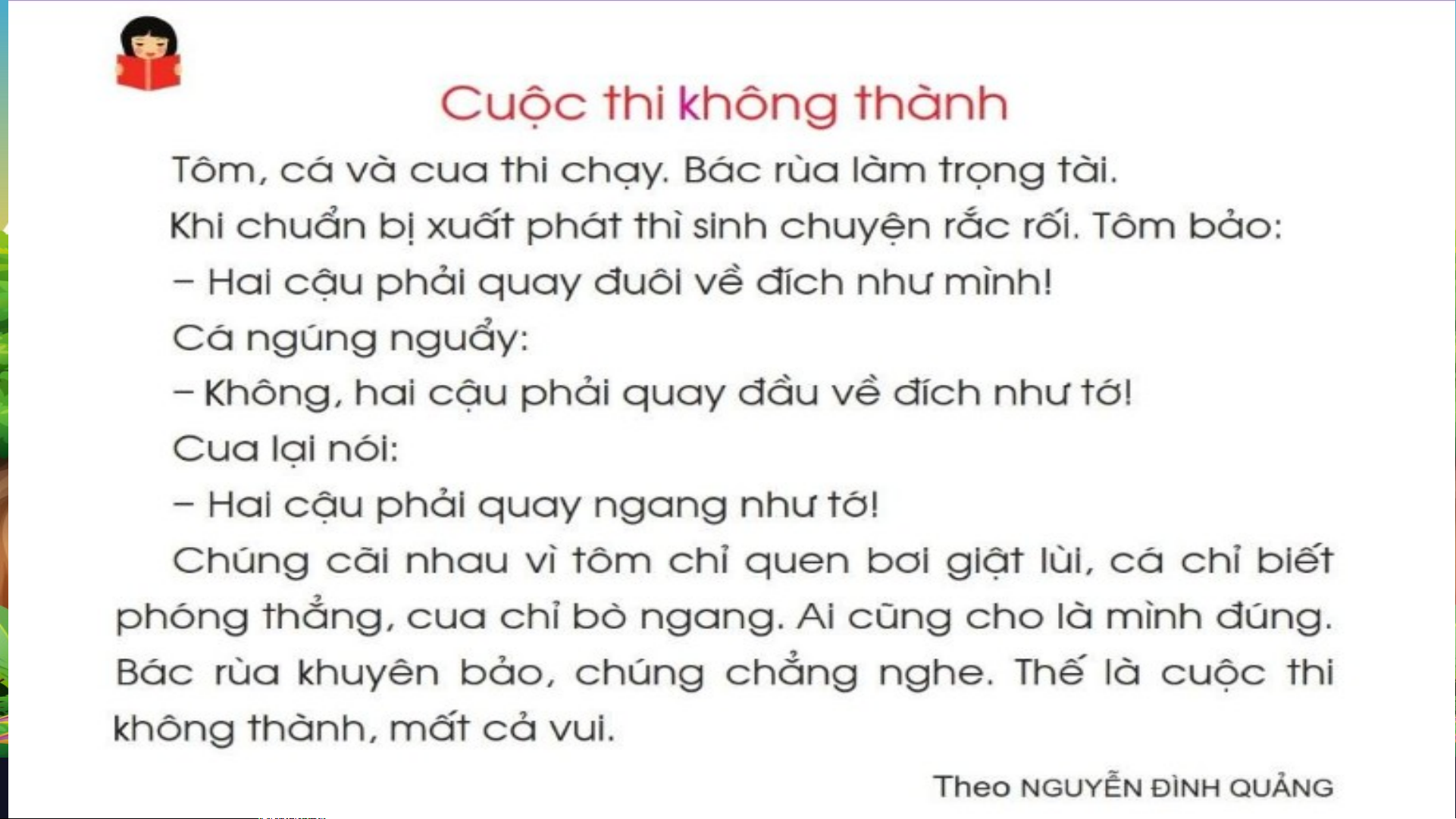 Giáo án điện tử Tiếng việt 1 Cánh diều: Cuộc thi không thành