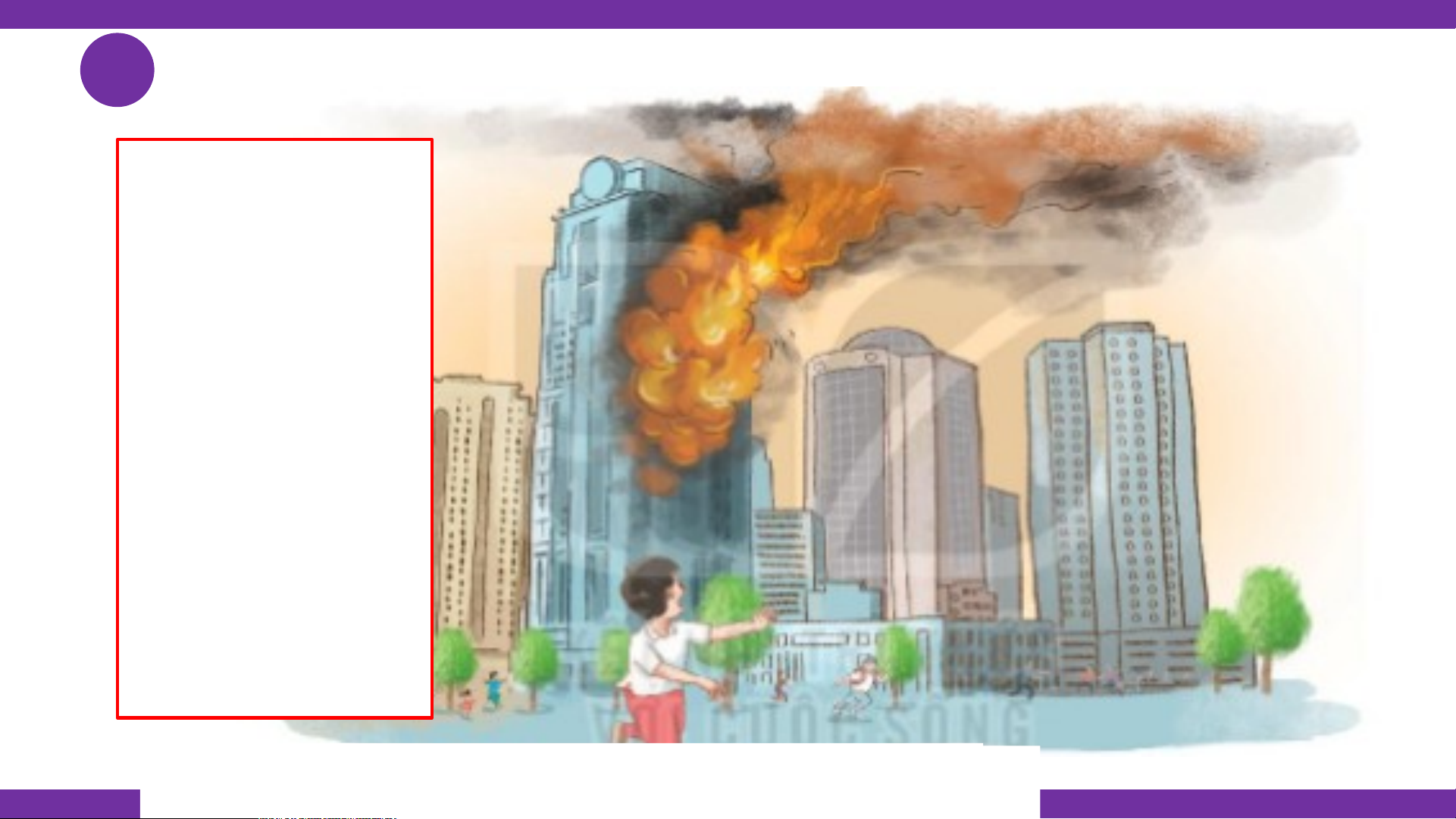 1 Quan sát tranh vẽ cảnh tượng ở một khu nhà cao tầng Chúng ta phải hét to báo cho mọi người biết, cùng thoát hiểm. Gọi ngay số 114 cho cơ quan phòng cháy , chữa cháy, cứu nạn. Tìm cách thoát ra khỏi đám cháy. a. b. Có Ch c úh nuy g ện ta gì p h đan ải l g x àm ảy gì ra kh? i có hỏa hoạn ?