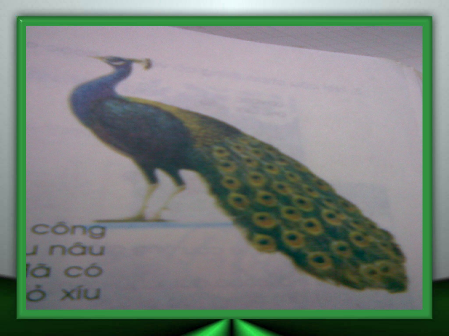 ôi nhỏ xíu thành hình rẻ quạt. sau u hai,ba năm, năm đuôi đuôi công ô t rống lớn ớ thành một m thứ hứ xiêm êm á o rự r c ự rỡ r sắc ắ màu m . àu Mỗi M chiếc lông ón g g ánhm nh àu m xanh sẫm, sẫm đượ đư c tô điểm đi ểm bằng óng án á hmàu hm xanh sẫm, sẫm đượ đư c tô điểm ể m bằng nhữn nhữ g