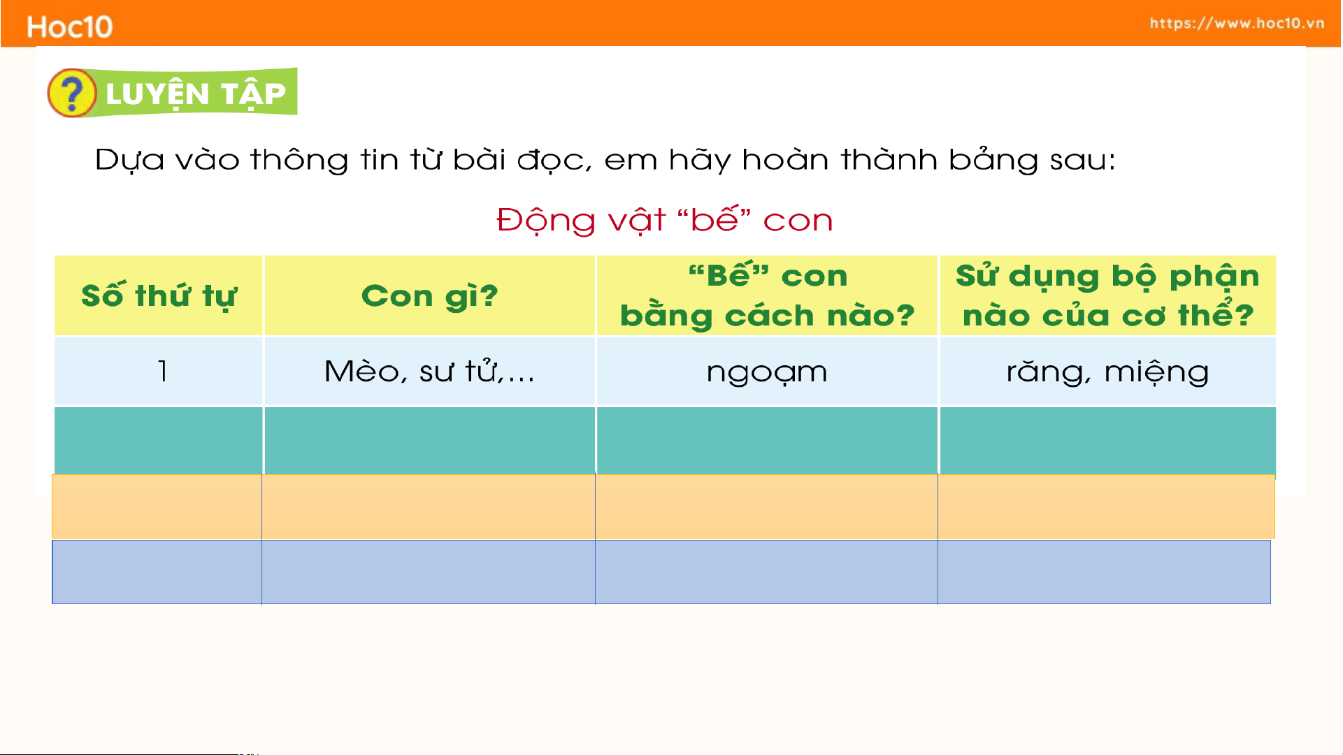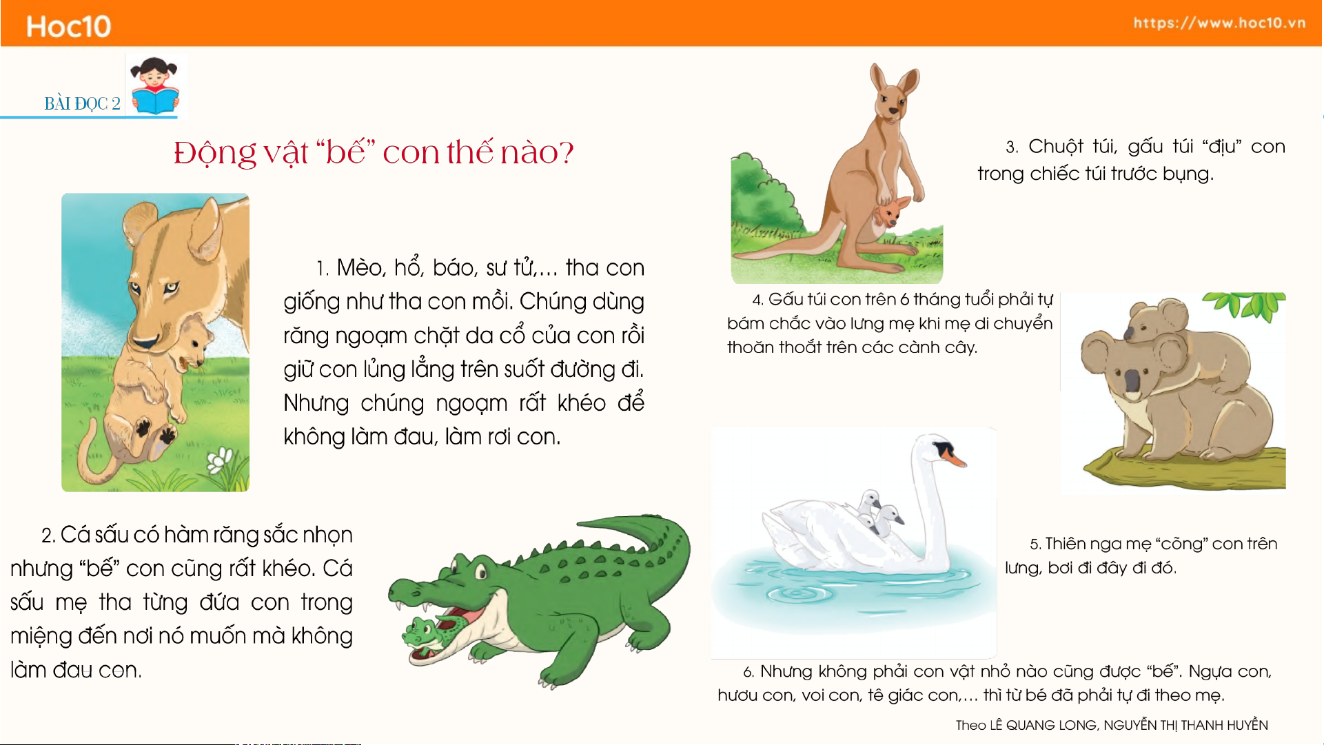 1. Kể tên các con vật có cách tha con giống như tha mồi