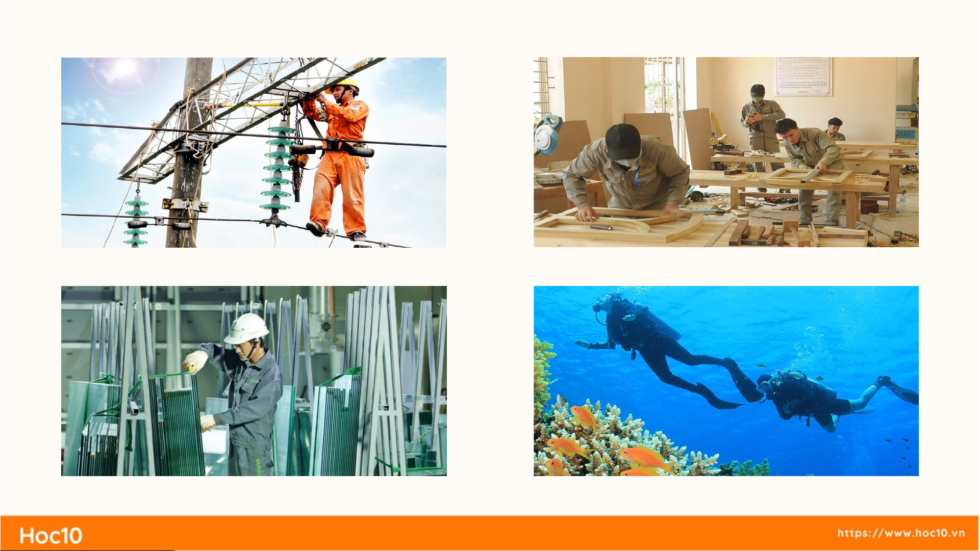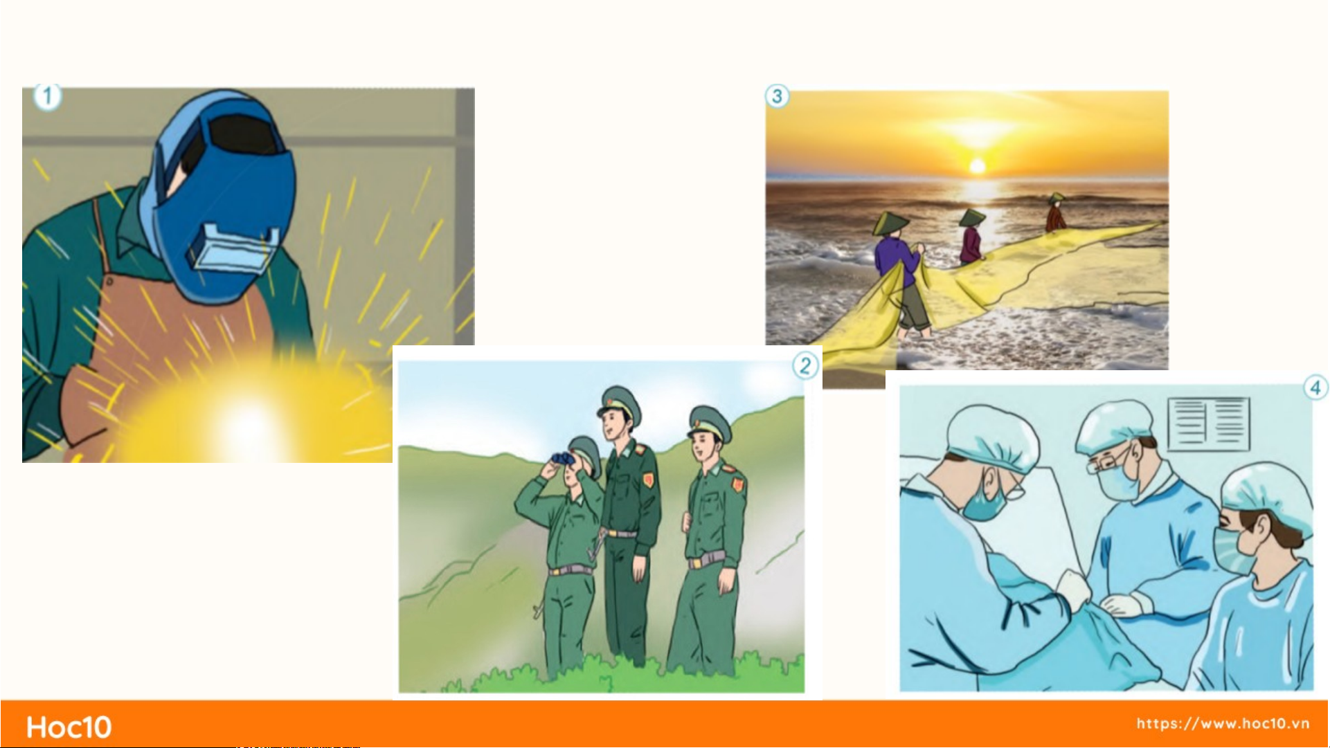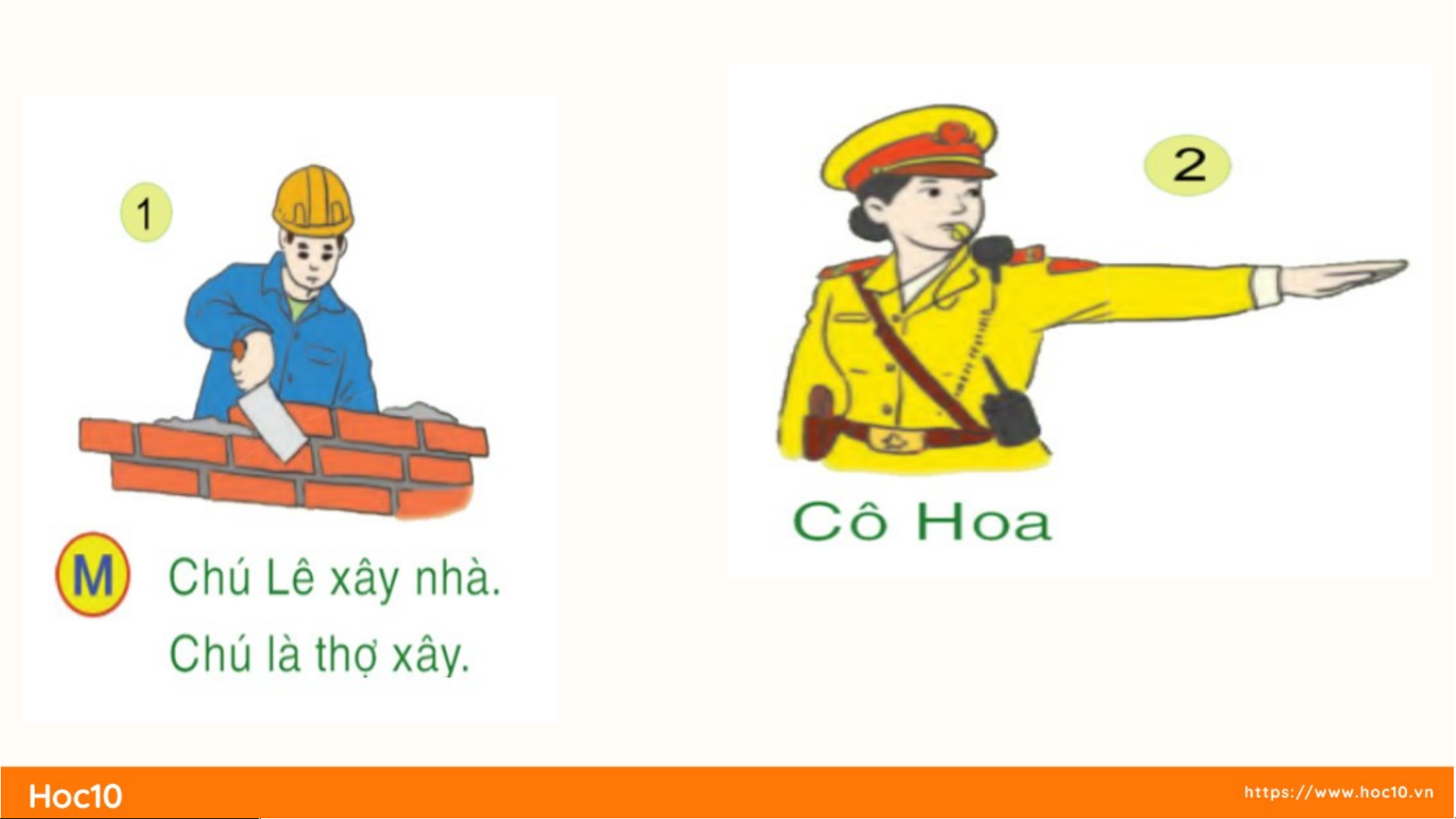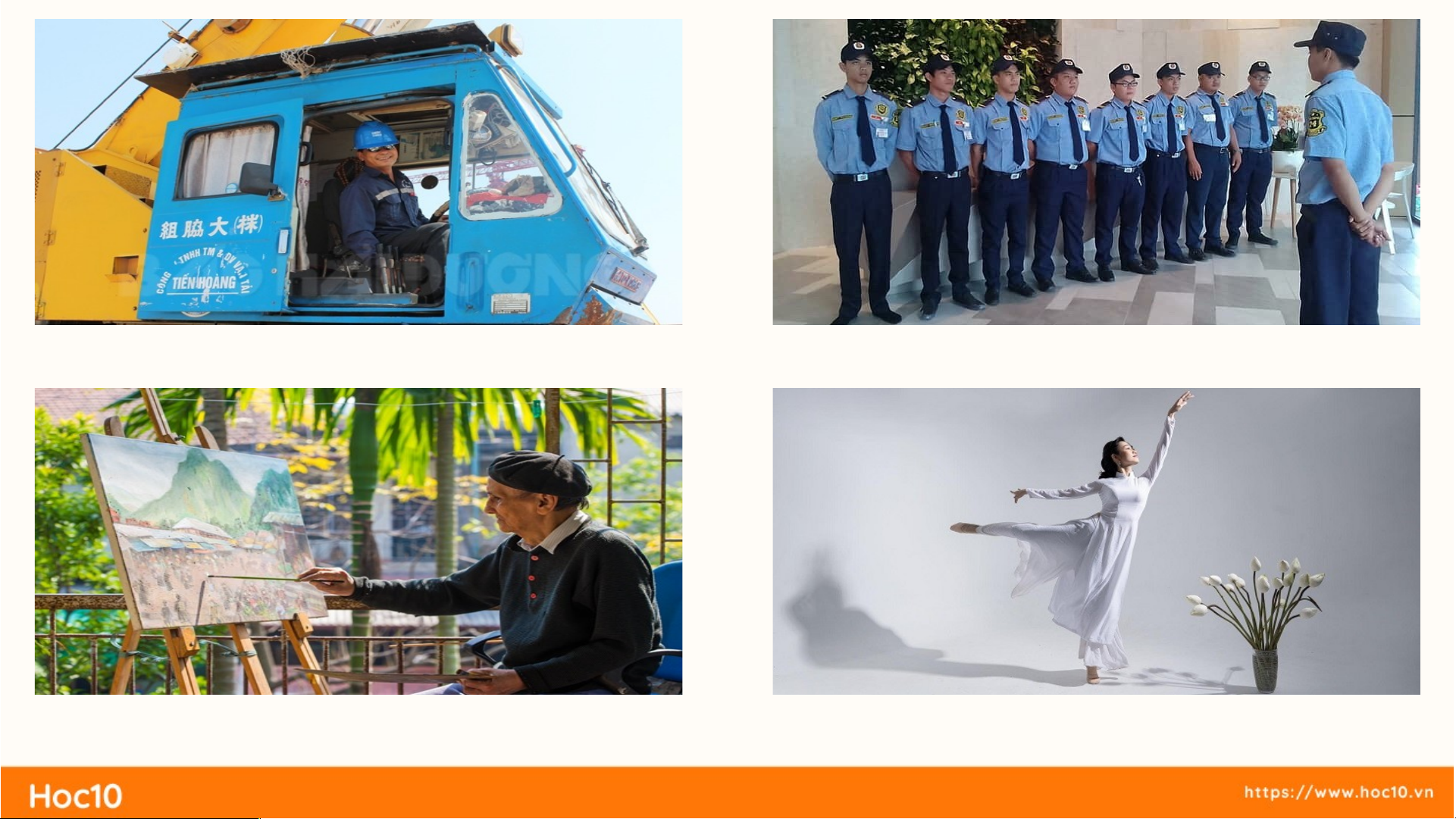 Cô là cảnh sát giao thông. Bác Tâm đang gặt lúa.
