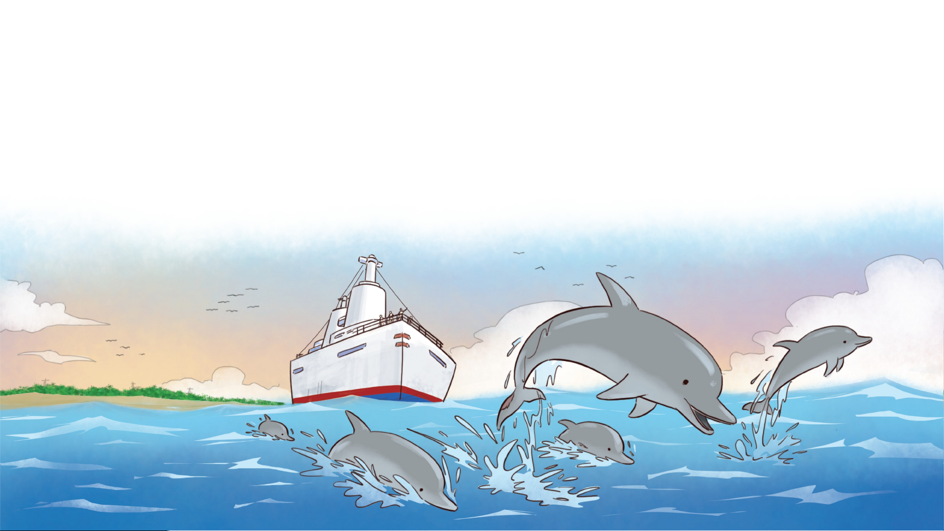Hôm sau, tàu nhổ neo. Đàn cá heo lại kéo đến. Chúng bơi trước mũi