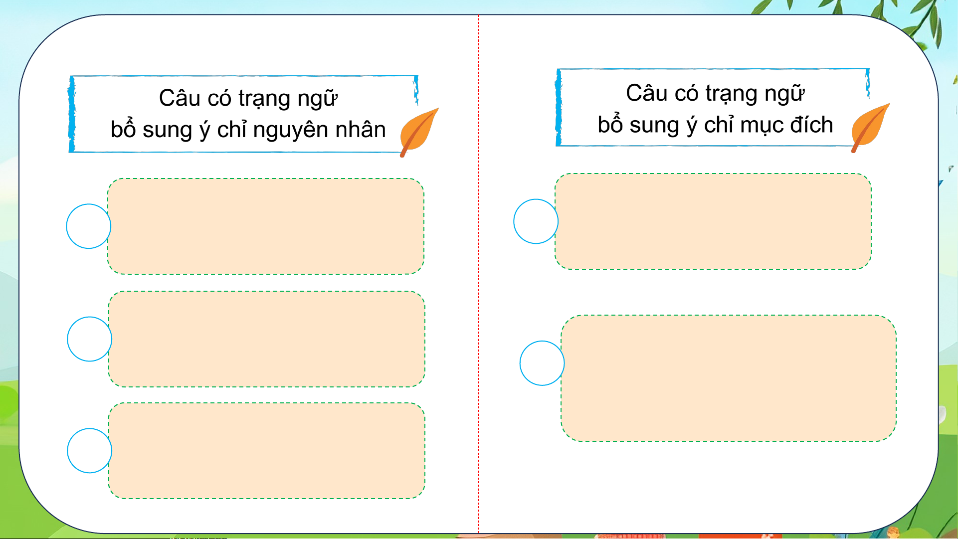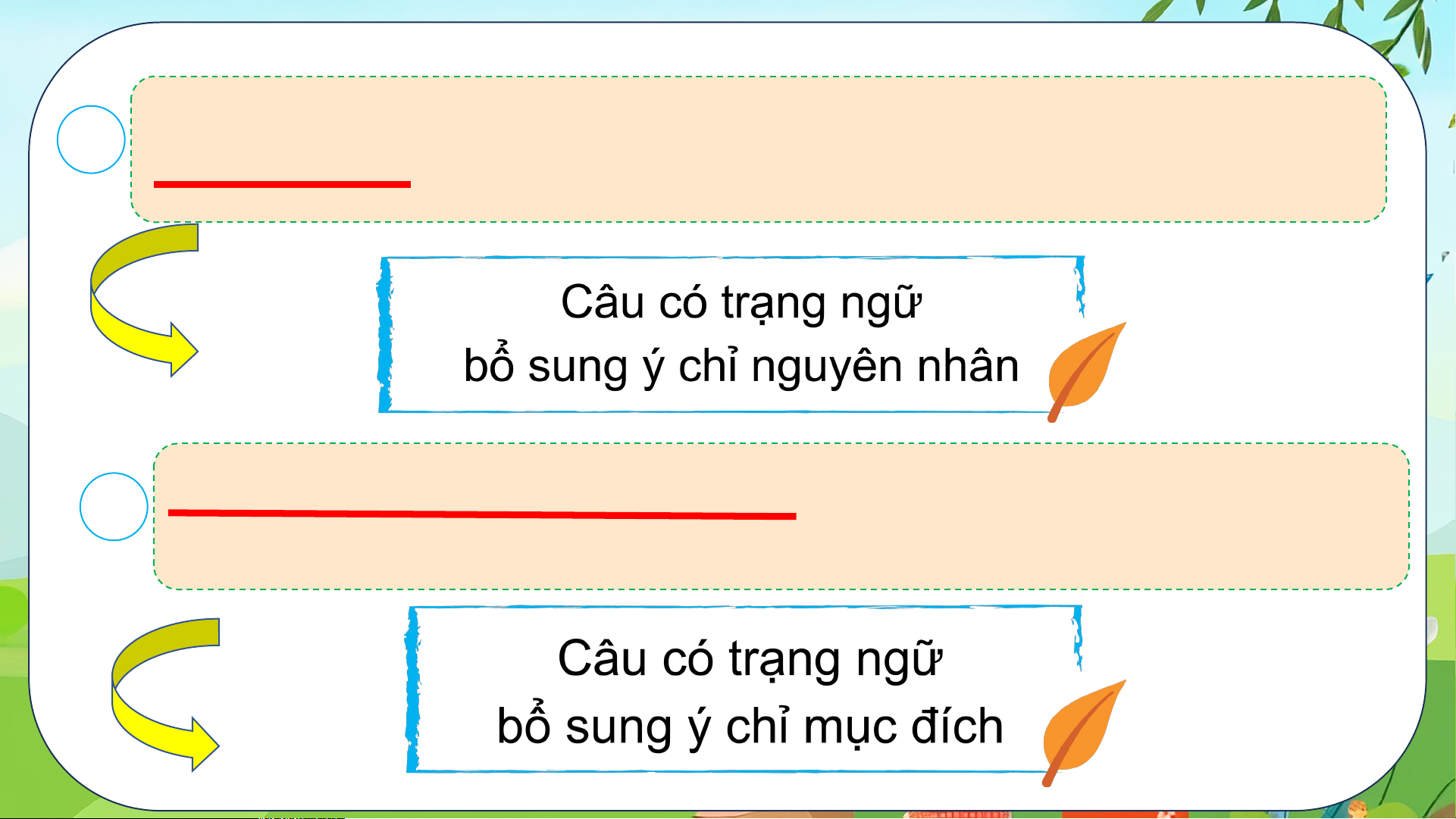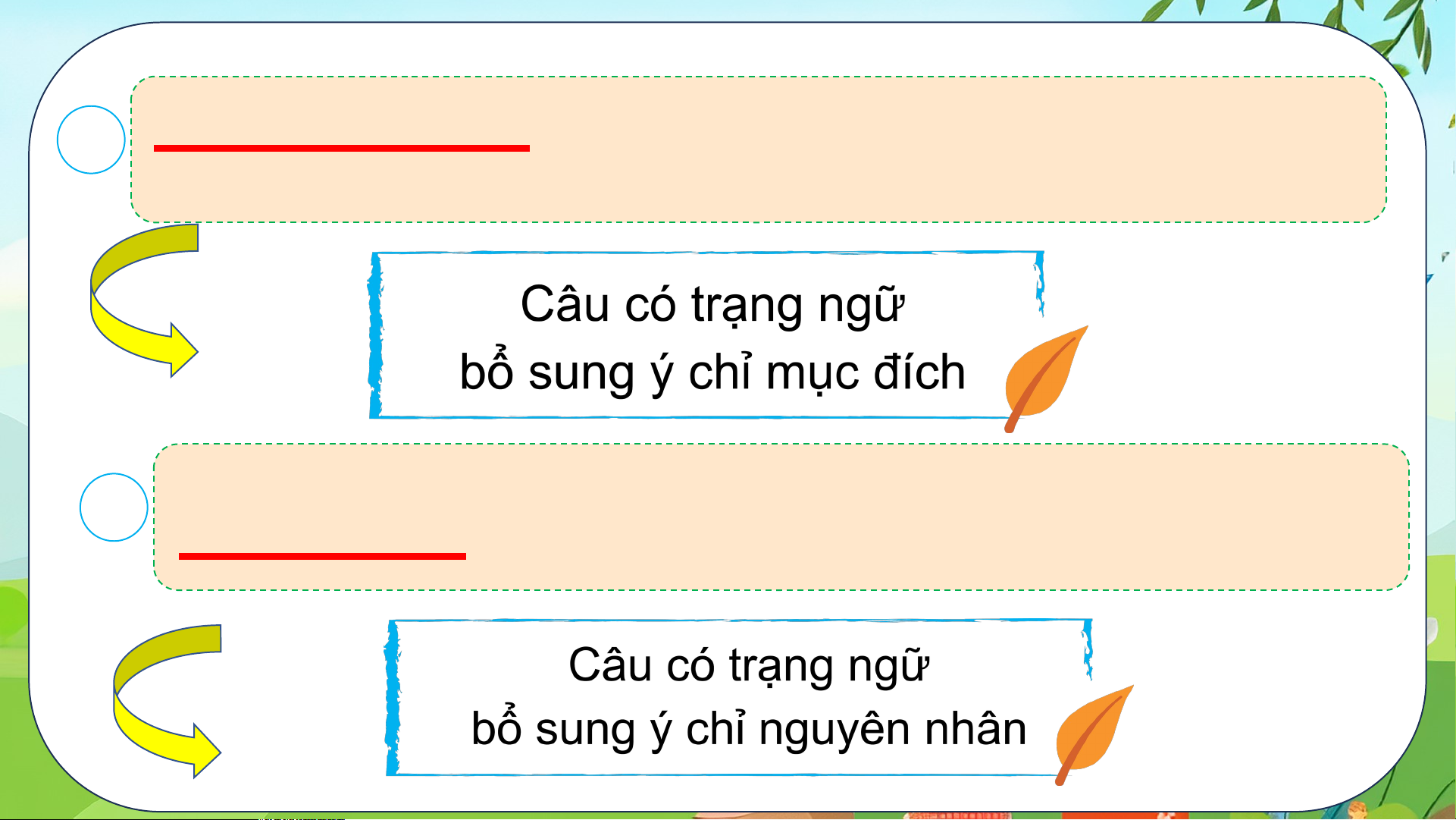 câu có trạng ngữ chỉ mục đích, nguyên nhân. KHỞI ĐỘNG BÍ MẬT BIỂN XANH 1 3 2 Trạng ngữ là gì?
