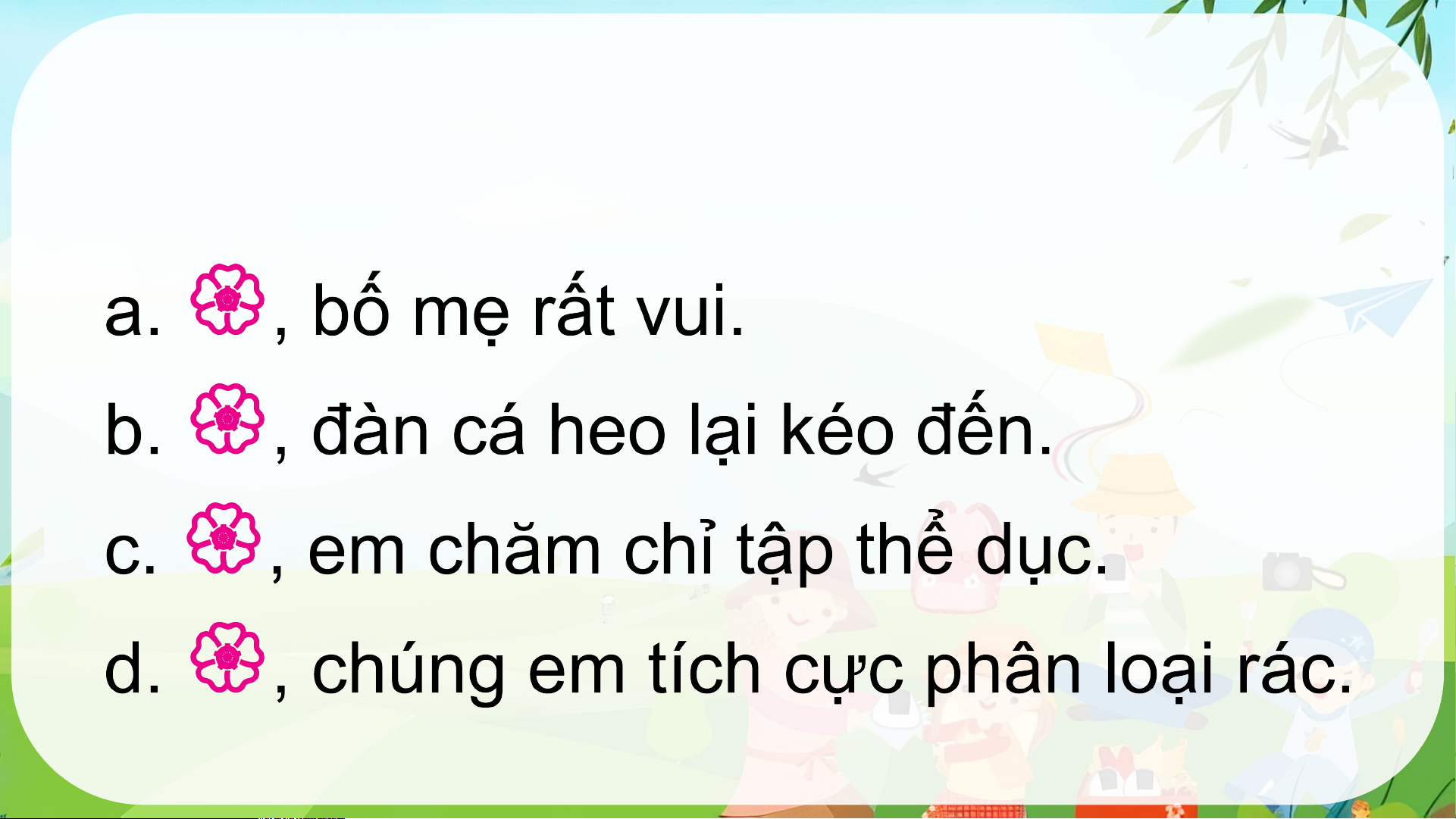 2. Chọn từ ngữ phù hợp trong khung thay cho mỗi hoa để hoàn
