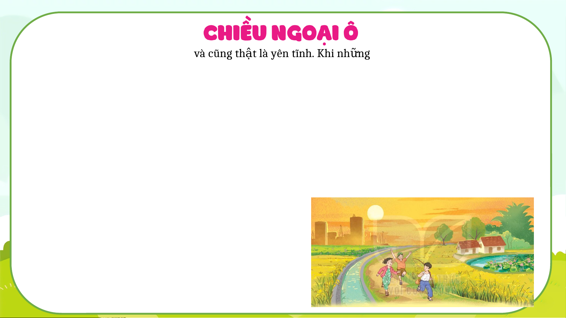 ồ lúa chín mênh mông/ và c ả một kho n ả g tr i ờ bao la,/nh n ữ g đám mây tr ng ắ /vui đùa đu i ổ nhau trên cao. // Ngoại ô (hay ngoại thành) khu vực bao quanh thành phố.