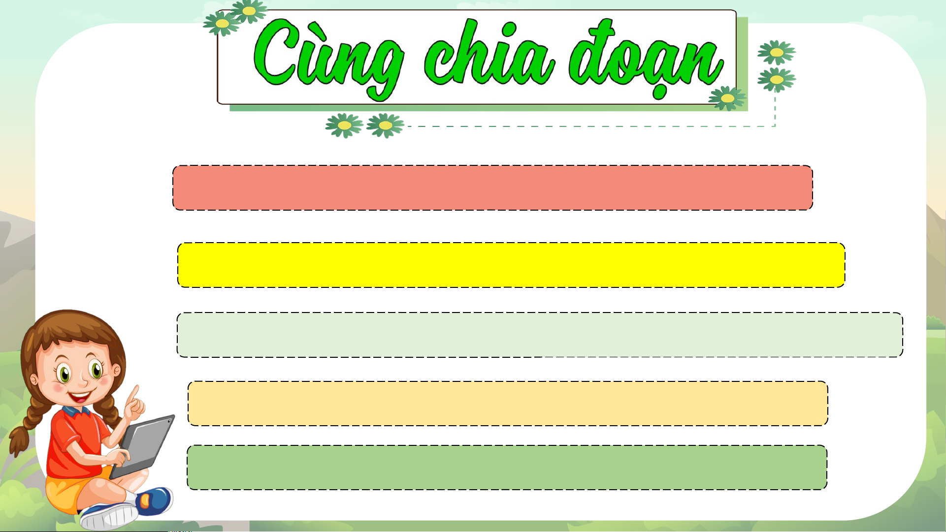 ữ g cây anh đào làm hàng rào. Hoa sẽ n ở r ộ m i ỗ đ ộ xuân v . ề Nh n ữ g chùm hoa ph n ơ ph t ớ h ng ồ , ph n ơ ph t ớ tím, thoang tho n ả g h ng ươ , hoà l n ẫ v i ớ mùi r m ơ r ạ trong bu i ổ sáng đ m ẫ sương. Đo n ạ 4 Em cũng sẽ dành m t ộ kho n ả h vư n ờ đ ể tr n ồ g hoa gi y ấ , hoa h n ồ g, hoa nhài và c ả nh n ữ g khóm hoa d i ạ bé xíu, tr n ắ g mu t ố . T n ừ g đàn bư m ớ vàng, bư m ớ tr n ắ g,... sẽ c ứ th ế r ủ nhau bay v . ề .. Đo n ạ 5 Ti ng ế
