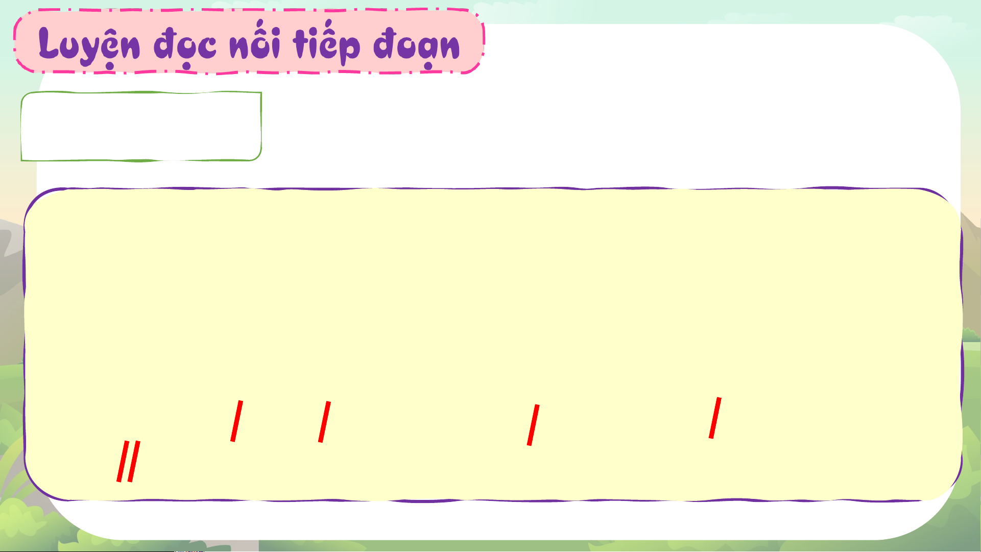 Và ngày nào em cũng không thôi m ơ c ướ , n u ế em có một khu v n ườ nh ư ở quê... Luy n ệ đ c ọ nhóm Yêu c u ầ - Phân công đ c ọ theo đo n ạ - T t ấ c ả thành viên đ u ề đ c ọ Luy n ệ đ c ọ toàn bài Tiêu chí đánh giá 1. Đ c ọ đúng. 2. Đ c ọ to, rõ. 3. Đ c ọ ng t ắ , ngh đ ỉ úng ch . ỗ Đọc l i ạ văn b n ả và tr l ả i c ờ ác câu h i ỏ sau: