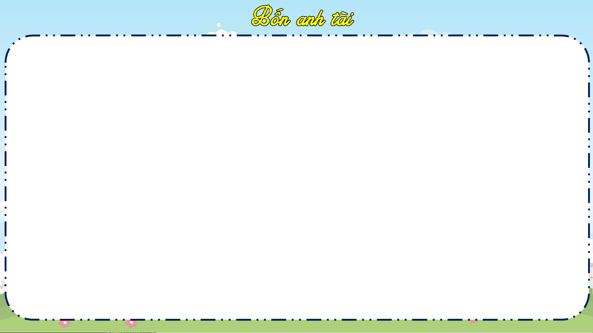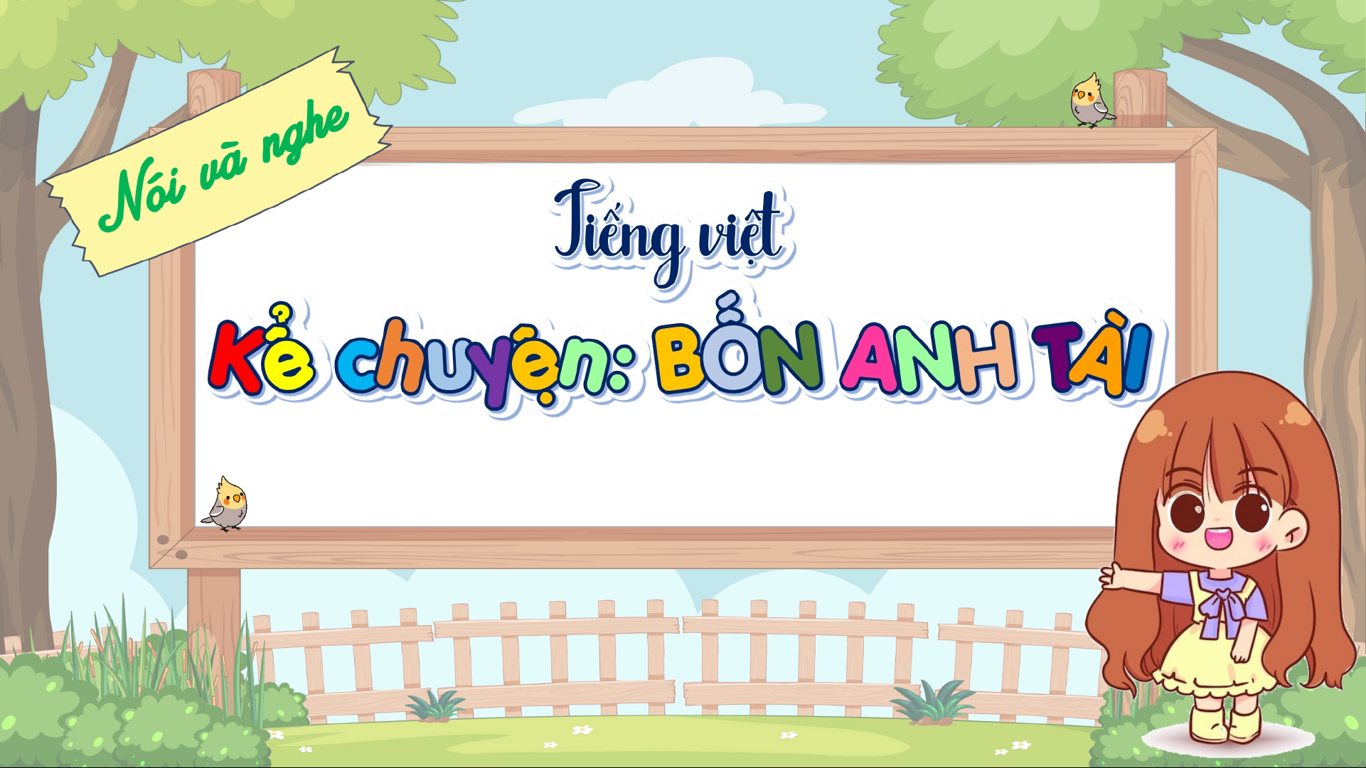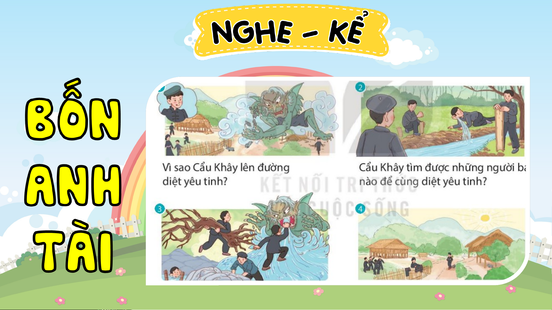 Ng N he g hiể h u iể câu c chuyệ chuy n ệ Bốn Bố anh n tài, t trả tr lờ l i ờ câu c hỏi hỏ idưới dư ới tranh tr Kể K lại lại đượ ư c ợ 1 – – 3 đoạn đo tro tr n o g n câu c chuyệ chuy n ệ dựa dự vào v ào tranh tr và v câu c hỏi hỏ i gợi g ợi ý ý (không hô ng bắt bắ buộc buộ kể k ể đúng úng nguy ng ê uy n ê văn v c ăn âu c c âu huyệ huy n) ệ . 1. Nghe 1. Nghe kể kể chuyện chuyệ