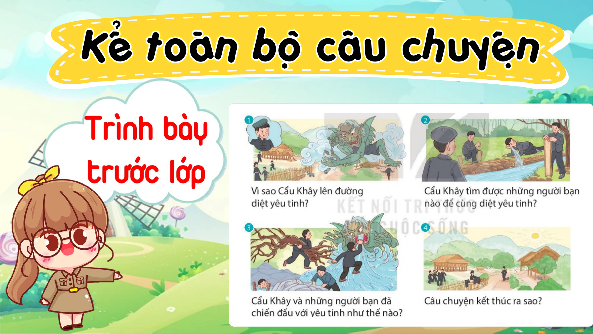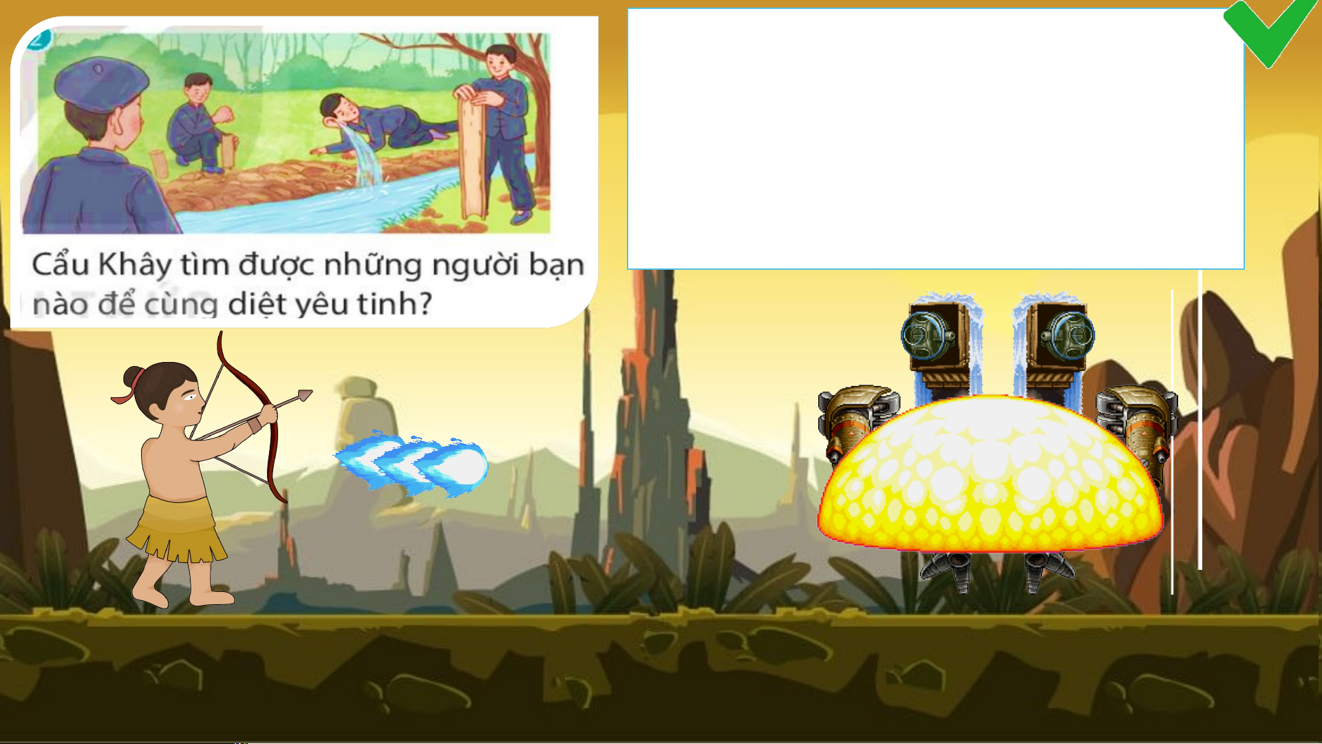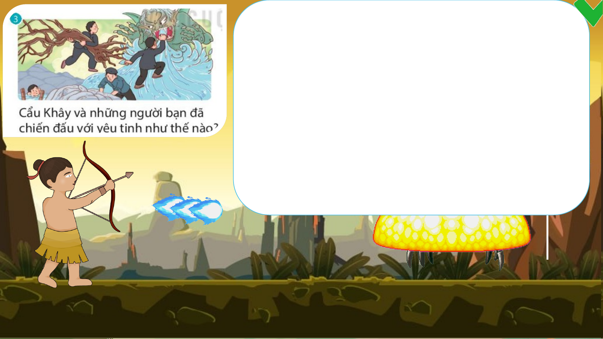 ổ cây đánh yêu tinh, Móng Tay Đ c ụ Máng kh i ơ dòng nư c ớ . Chi ti t ế 4: Làng b n ả yên bình tr ở l i, ạ C u ẩ Khây và nh n ữ g ngư i ờ b n ạ cùng dân b n ả m n ừ g chi n ế th n ắ g. 2. Tr l ả i câu ờ hỏi d i ướ tranh TIÊU DIỆT YÊU TINH Cẩu Khây lên đường diệt yêu tinh vì thương dân bản bị yêu tinh quấy phá.