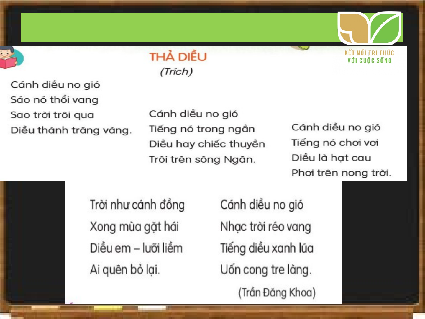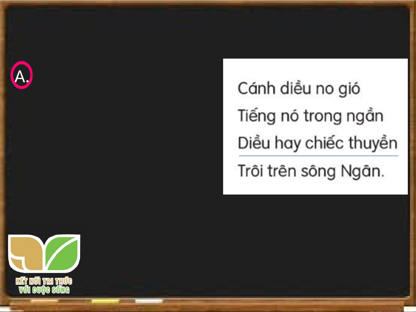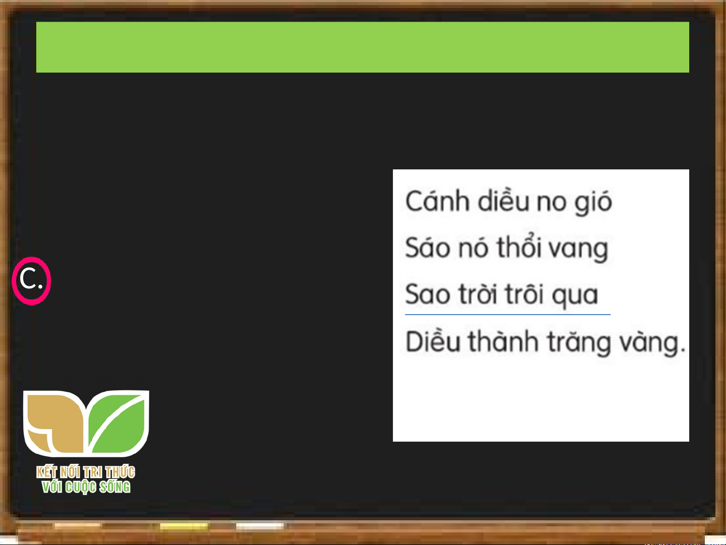 Câu 1:Trong khổ 1, vật gì trôi qua? A. Mặt trăng B. Mặt trời C. Sao trời Câu 2: Trong khổ 2, Diều