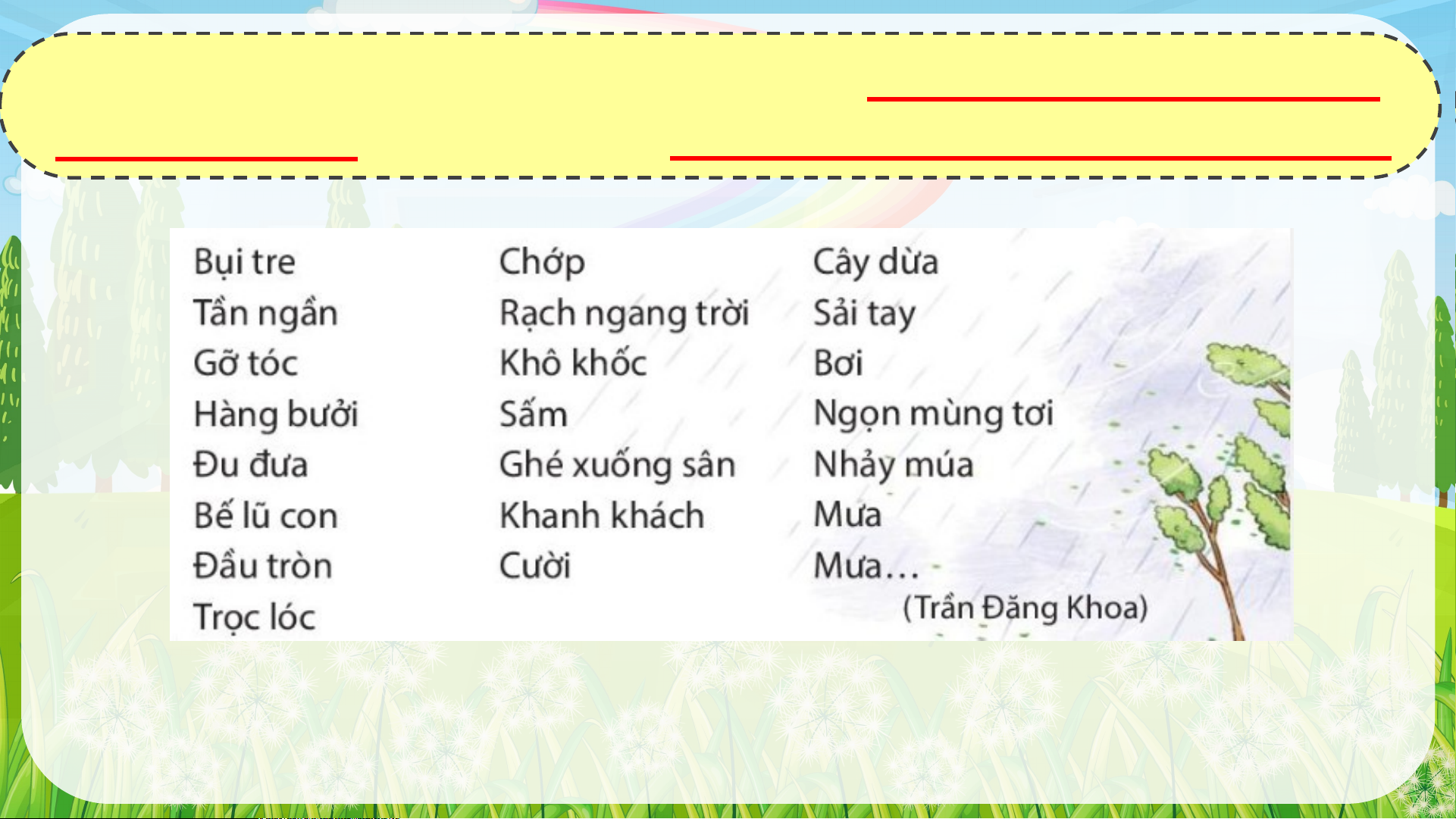 3. Trong đoạn thơ dưới đây, những vật và hiện tượng tự nhiên nào