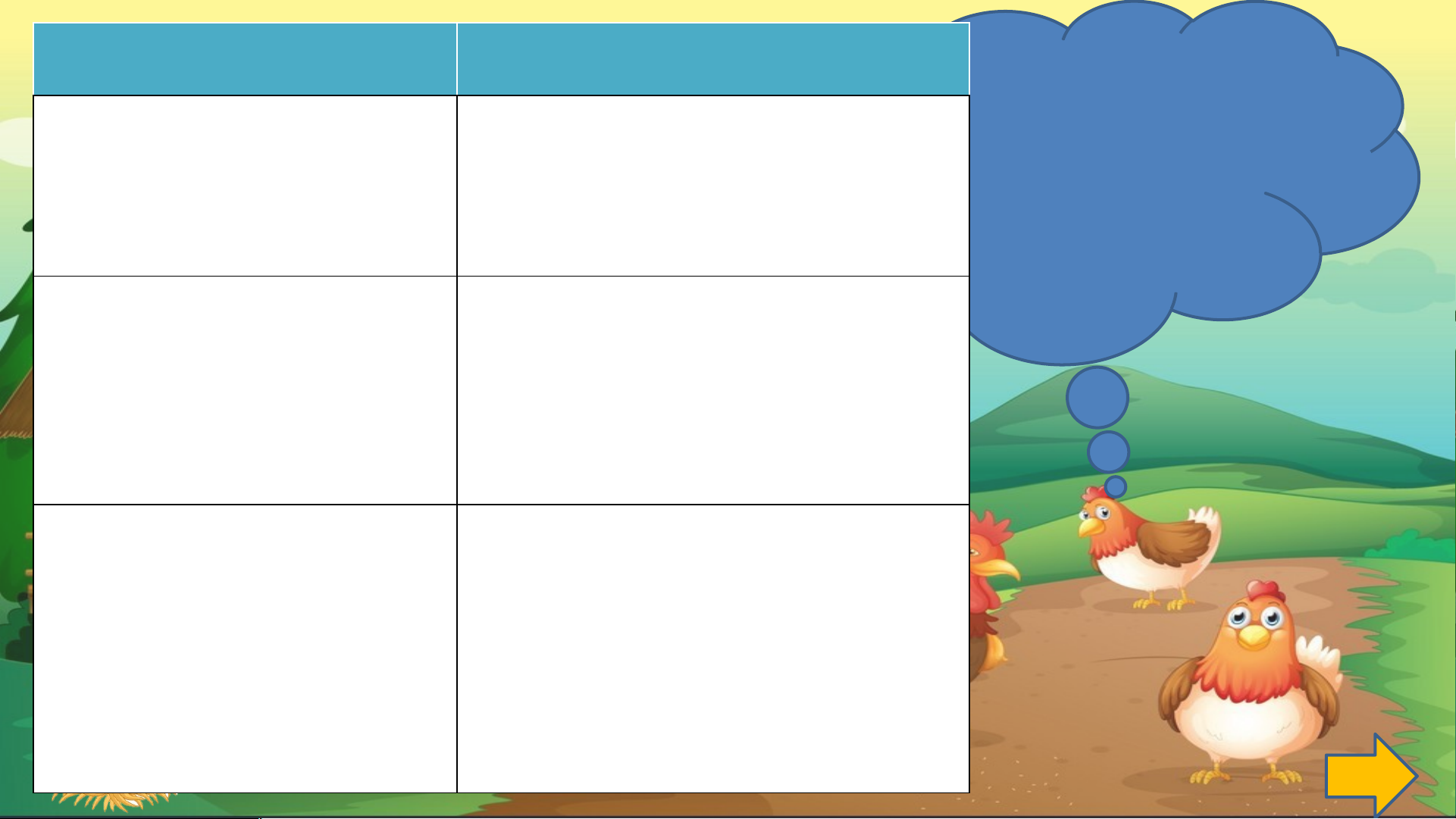 Bên trong quả trứng Bên ngoài quả tr 2. ứ ngGà con thấy bầu Những thứ không có
