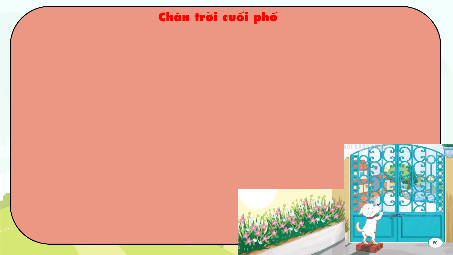 Có chú cún sống trong ngôi nhà nhỏ. Từ cổng nhà, cún nhìn thấy dãy