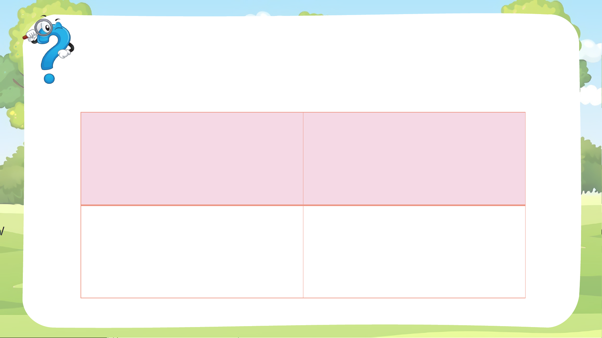 Tìm thông tin về nhân vật cún trong câu chuyện theo gợi ý. Tên Nơi ở Hình dáng Tính cách Tiếng kêu Cún Ngôi nhà Nhỏ
