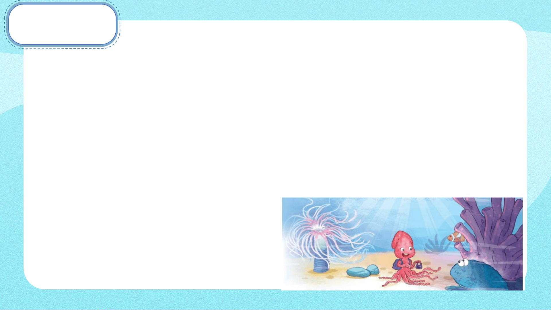 Cá mực tung tăng đi học trong làn nước biển xanh biếc, cái lọ mực kè kè một bên.