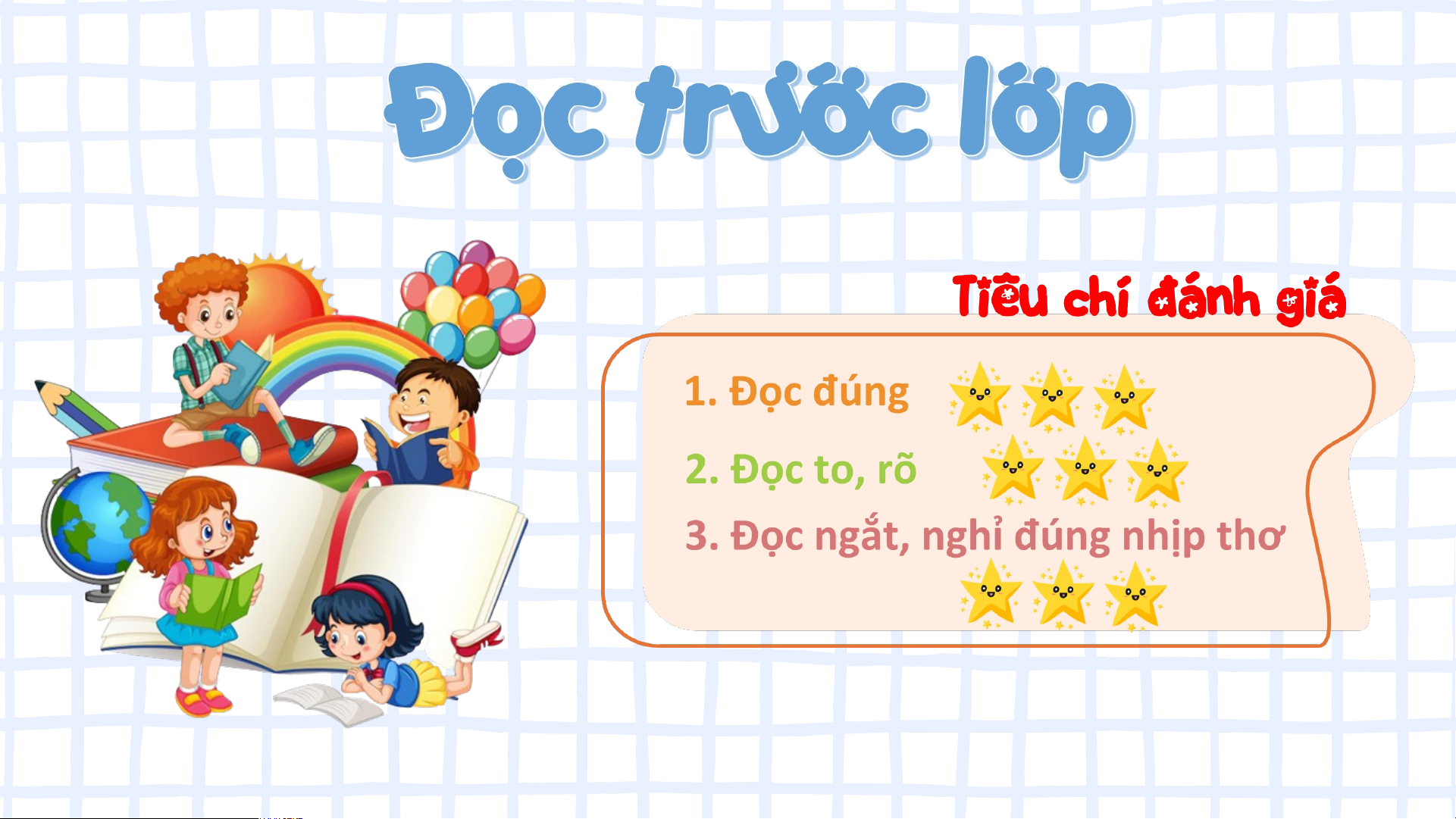 đầu học kì; tốc độ đọc 80-85 tiếng/phút. Biết nghỉ hơi ở chỗ có dấu câu hay chỗ ngắt nhịp thơ.