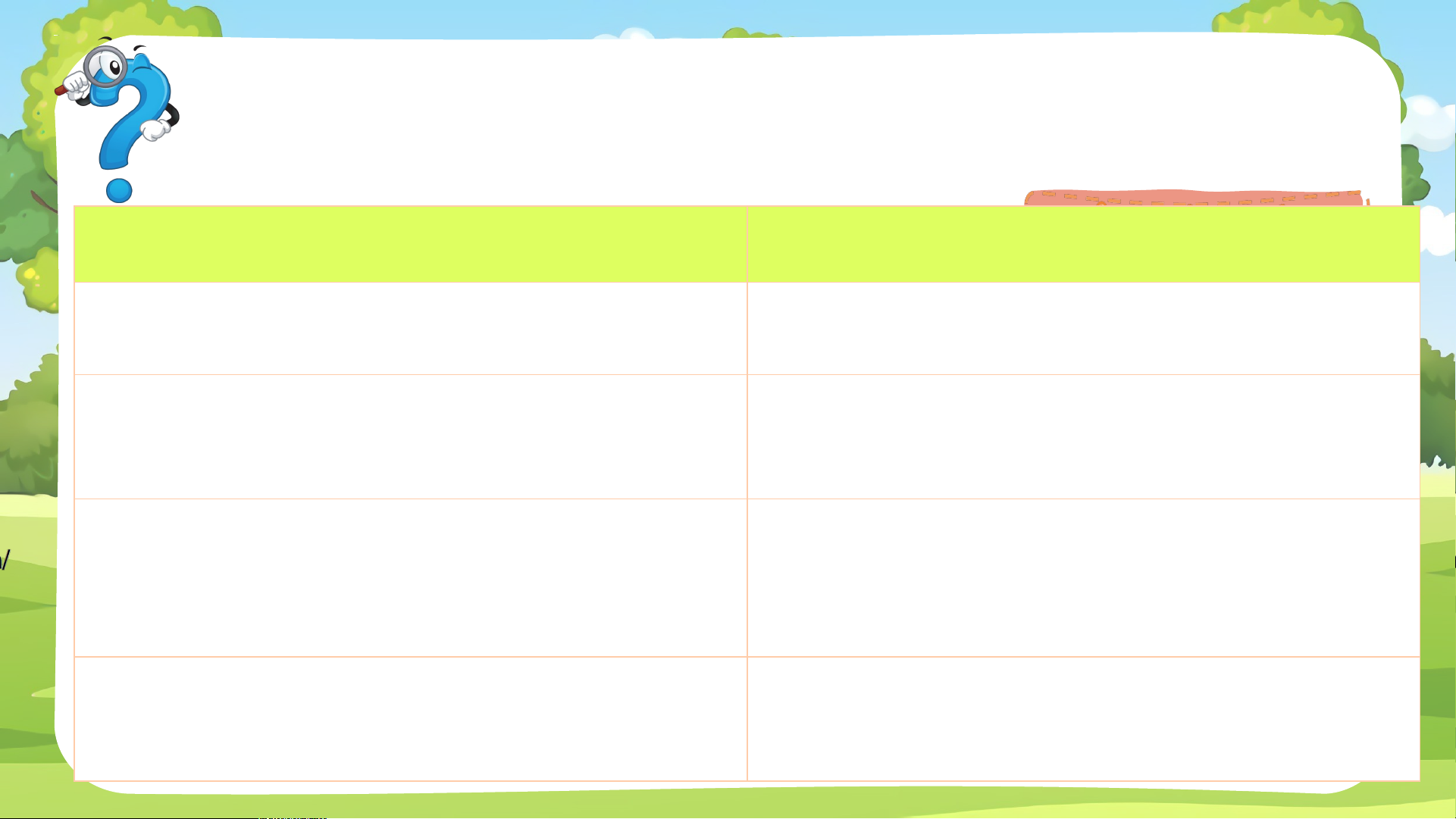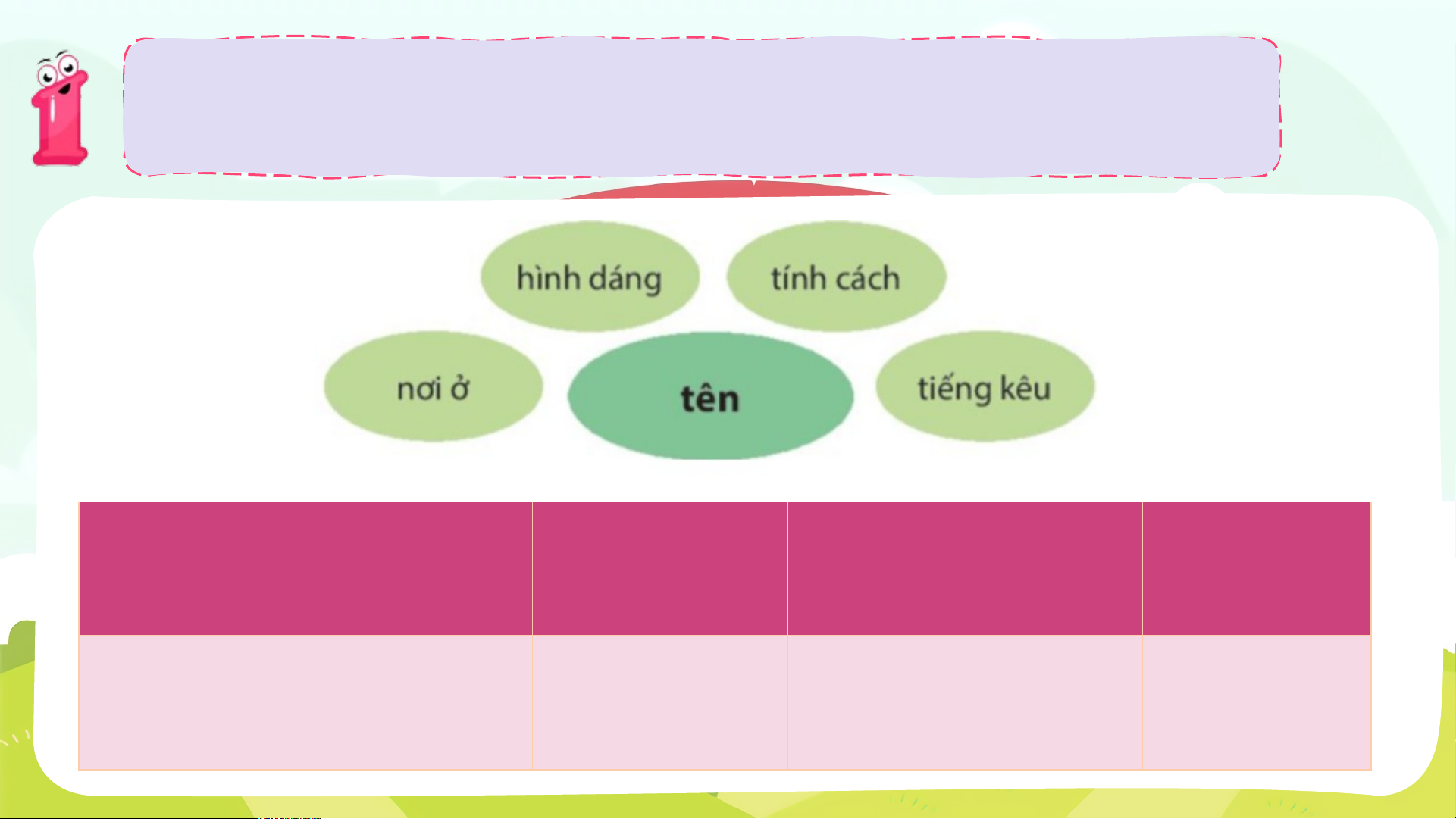 Tìm thông tin về nhân vật cún trong câu chuyện theo gợi ý. Tên Nơi ở Hình dáng Tính cách Tiếng kêu Cún Ngôi nhà Nhỏ