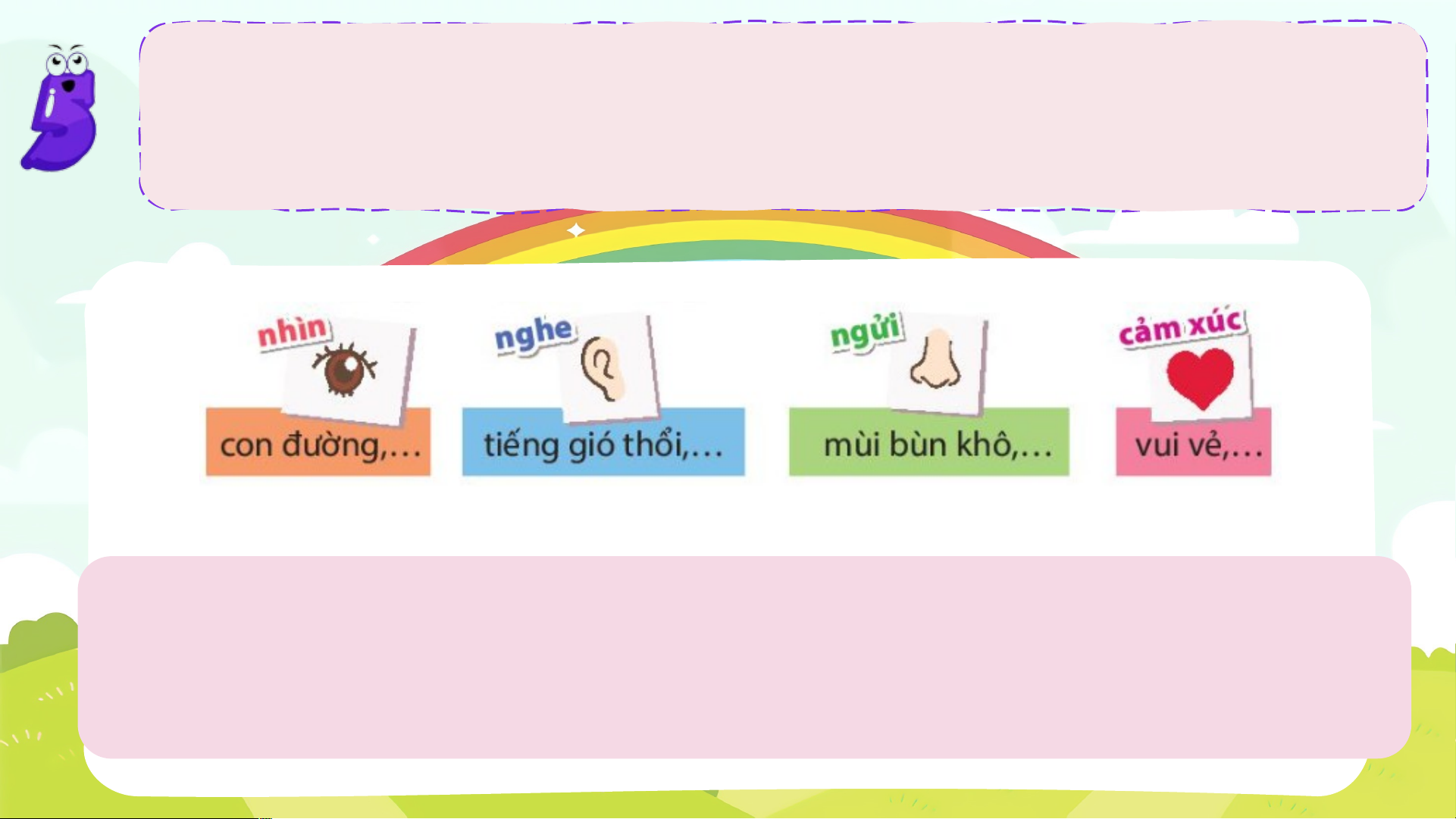 Gợi ý: Dựa vào các cảnh vật mà cún nhìn thấy, em hãy