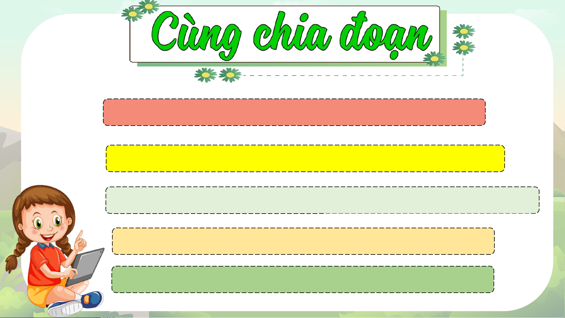 ữ g cây anh đào làm hàng rào. Hoa sẽ n ở r ộ m i ỗ đ ộ xuân v . ề Nh n ữ g chùm hoa ph n ơ ph t ớ h ng ồ , ph n ơ ph t ớ tím, thoang tho n ả g h ng ươ , hoà l n ẫ v i ớ mùi r m ơ r ạ trong bu i ổ sáng đ m ẫ sương. T khó c: Đo n ạ 4 Em cũng sẽ dành m t ộ kho n ả h vư n ờ đ ể tr n ồ g hoa gi y ấ , hoa h n ồ g, hoa nhài và c ả nh n ữ g khóm hoa d i ạ bé xíu, tr n ắ g mu t ố . T n ừ g đàn bư m ớ vàng, bư m ớ tr n ắ g,... sẽ c ứ th ế r ủ nhau bay v . ề .. T khó c: Đo n ạ 5 Ti ng ế