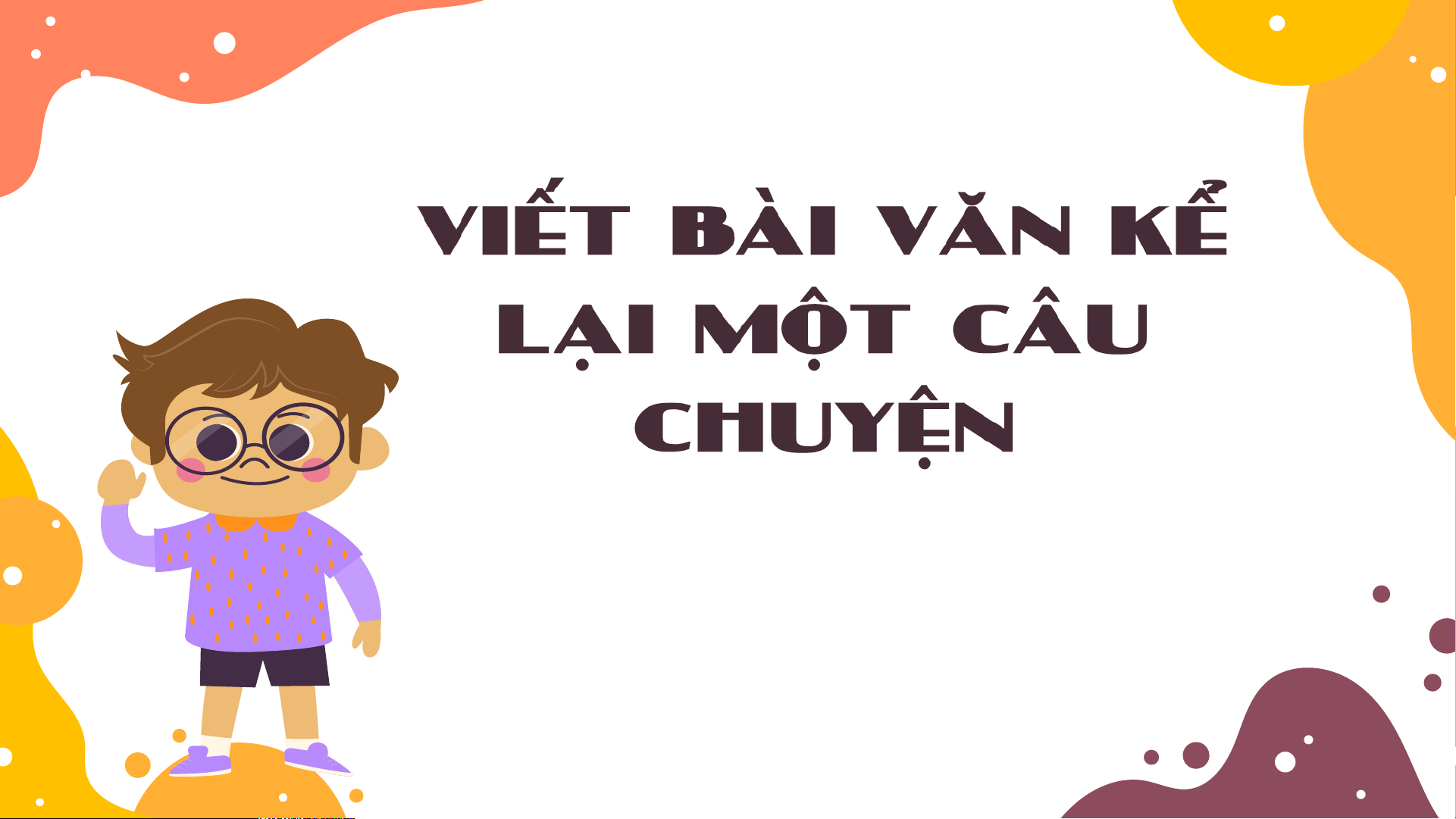 bài của bài văn kể chuyện? Biết cách vi t ế bài văn k ể l i ạ m t ộ câu chuy n ệ đã h c ọ ho c ặ đã nghe. Vi t ế bài văn k ể l i ạ m t ộ câu chuy n đ ệ ã đ c ọ ho c ặ đã nghe. Vi t ế bài văn k ể l i ạ m t ộ câu chuy n ệ đã đ c ọ hoặc đã nghe. Th l ể oại Văn k ể chuy n ệ Kiểu bài Kể một câu chuy n ệ có n i ộ dung cho s n ẵ Tr ng t ọ âm Kể một câu chuy n ệ Gi i ớ hạn Câu chuy n ệ đã đư c ợ nghe đư c ợ đ c ọ mà em thích nh t ấ H ng ướ d n v ẫ i t ế Dàn ý Mở bài