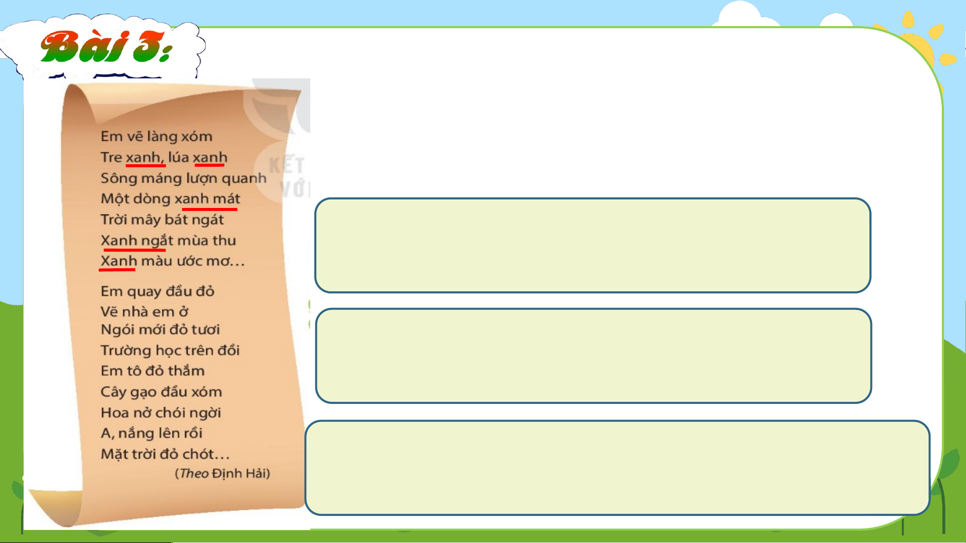 a. Tìm các tính từ chỉ màu xanh trong đoạn thơ.