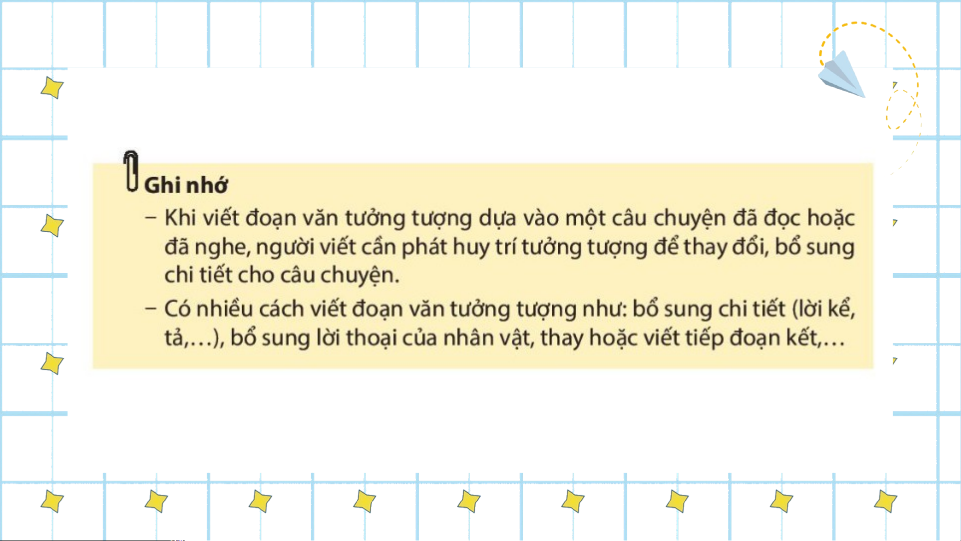 Biết cách viết đoạn văn tưởng tượng dựa trên một