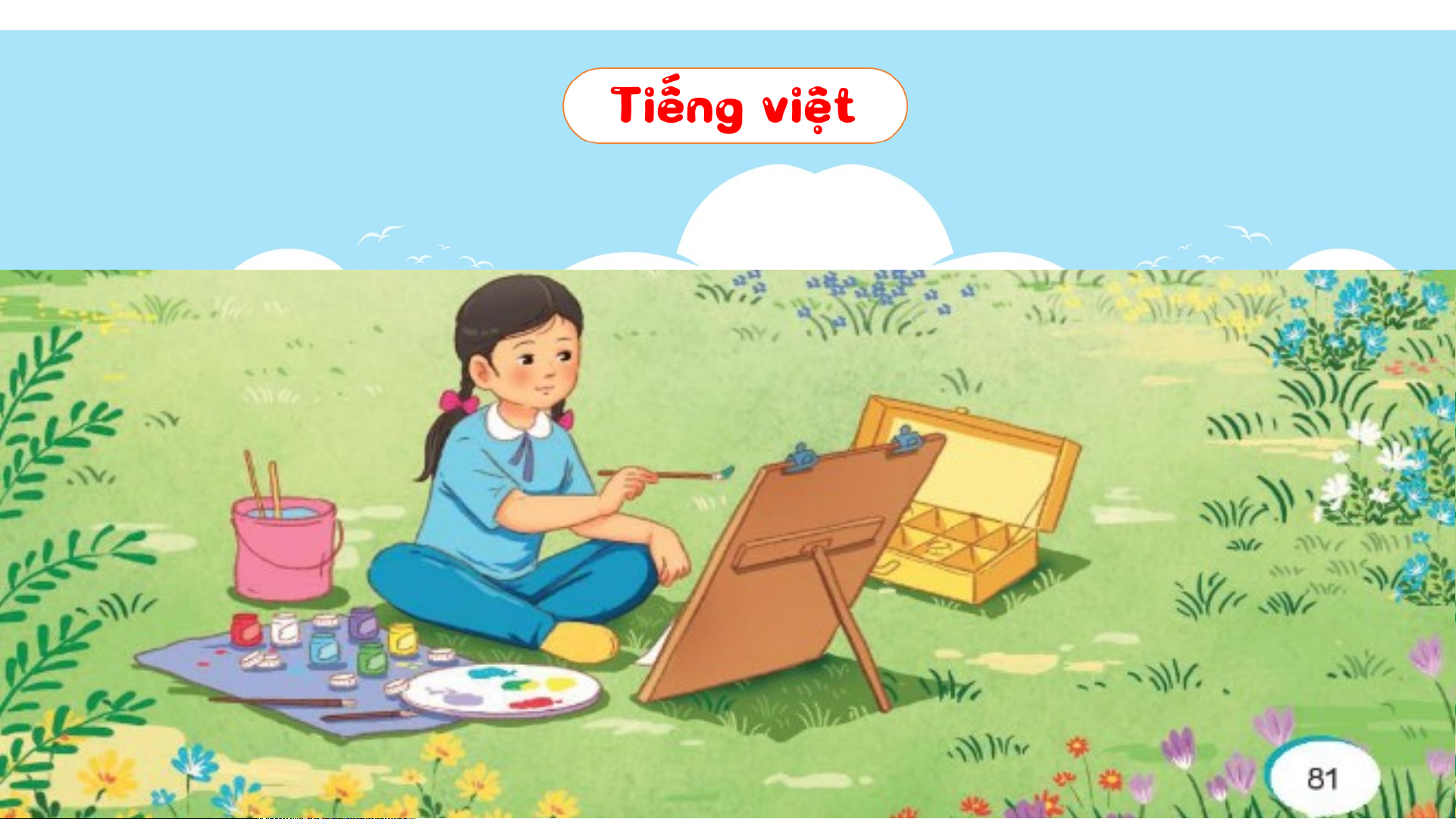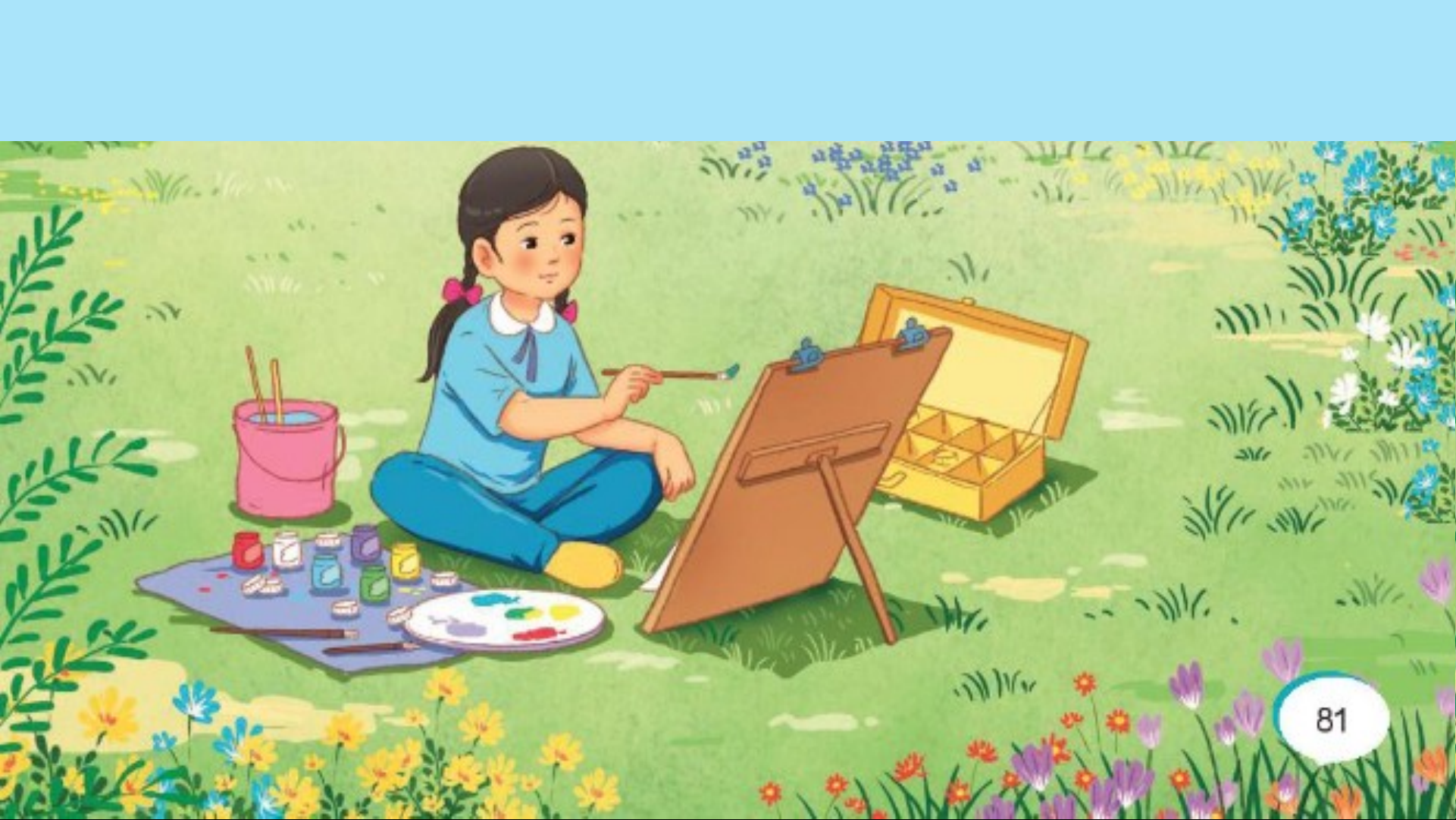 tranh Bống vẽ: “Chà chà! Vẽ như đồng cỏ đến kì nở hoa!”