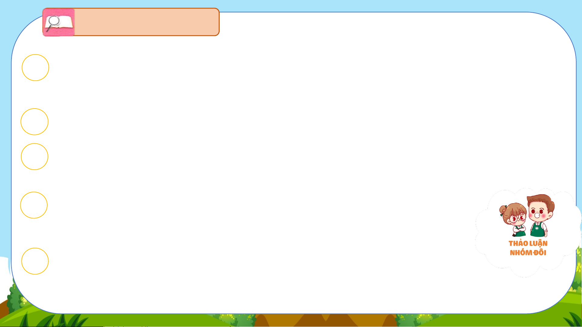nghiệm và khám phá sẽ đem lại niềm vui cho mỗi người. 4 Nhóm đôi Nếu có thời gian rảnh Vẽ Sáng tác thơ rỗi, em sẽ làm gì? Vì sao em thích làm việc đó? Làm đồ chơi LUYỆN ĐỌC Tai nghe Mắt dõi Tay dò ĐỒNG CỎ NỞ HOA
