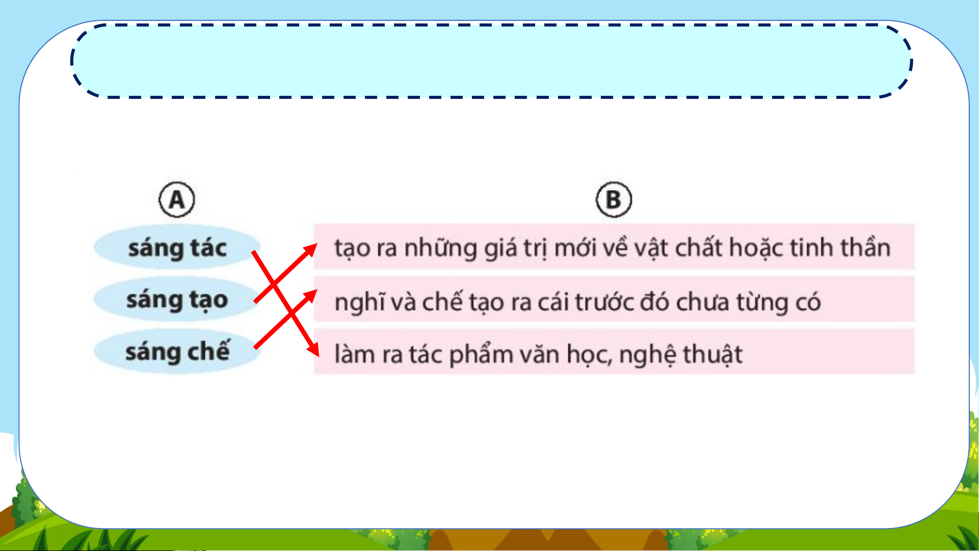 1. Tìm nghĩa ở cột B phù hợp với mỗi từ ở cột A.