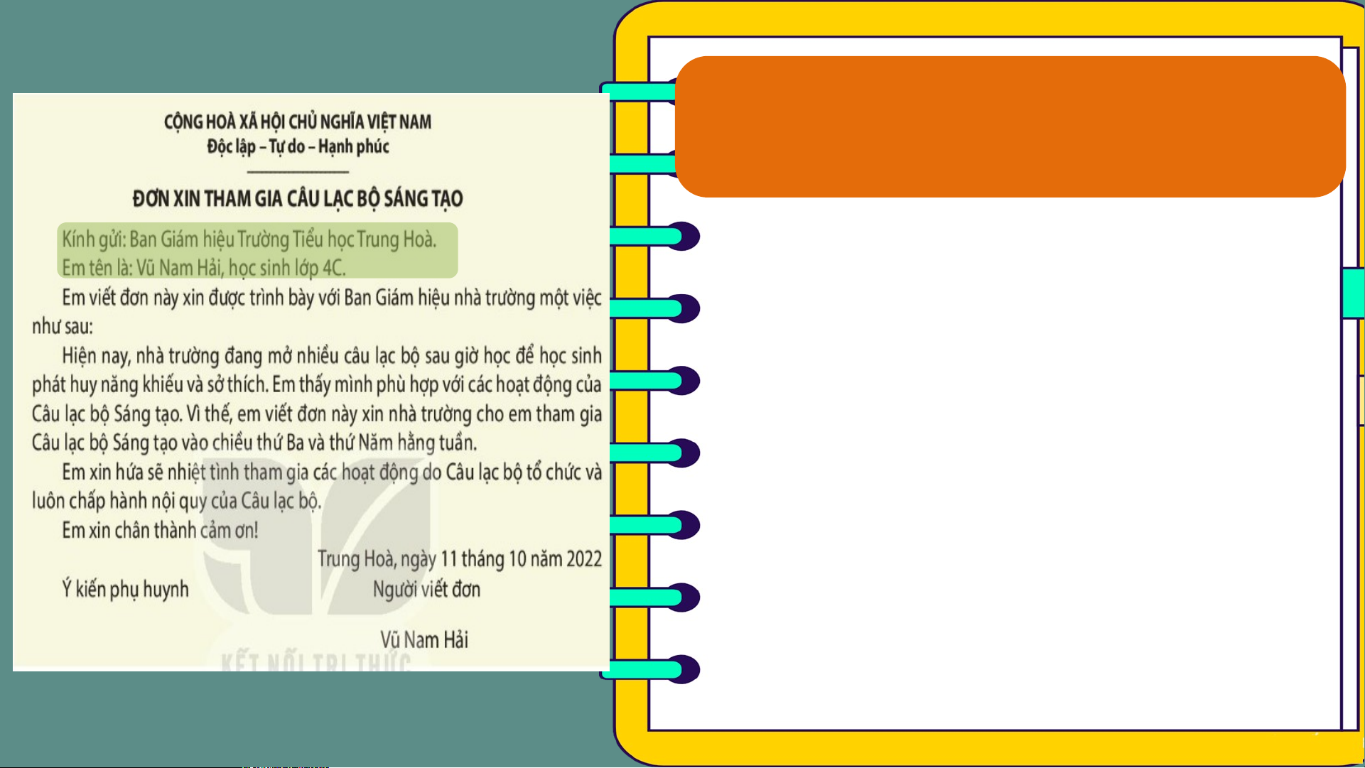 Ví dụ: Đơn xin ngh ỉ h c ọ vì b ị m ố , đơn xin tham gia câu l c ạ b ộ Ti ng ế Anh, đơn xin h c ọ đàn, đơn xin h c ọ võ… Trao đ i ổ v i ớ ngư i ờ thân v ề m t ộ tình hu ng ố c n ầ vi t ế đ n ơ và cách vi t đ ế n ơ đó.