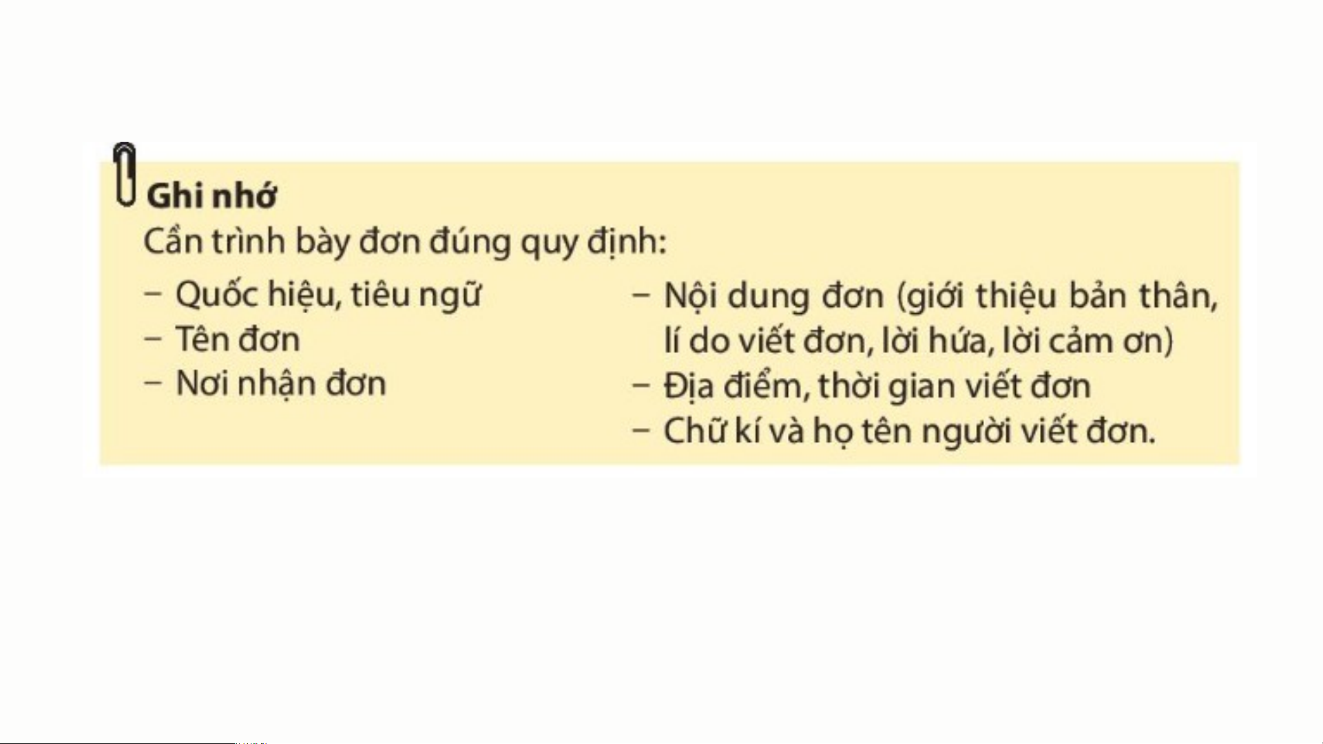theo một trật tự cố định. 2. Trao đ i v ổ ề nh ng ữ đi m ể c n ầ l u ý ư khi vi t đ ế n ơ Hình th c ứ N i du ộ ng c a ủ đ n ơ c a ủ đ n ơ Thảo luận nhóm Hình th c ứ c a ủ đ n ơ - Đ n ơ vi t ế theo khuôn m u, ẫ có tiêu ng , ữ tên đ n ơ , thông tin v ề ngư i ờ vi t ế , ngư i ờ nhận đ n ơ , ngư i ờ vi t ế đ n ơ (c n ầ ký và ghi roc h ọ tên), ngư i ờ nh n ậ đ n ơ có th ể là cá nhân ho c ặ t p ậ th . ể N i ộ dung c a ủ đ n ơ (1). Gi i ớ thi u ệ thông (2) Lý do vi t ế tin v ề bản thân (h ọ 3) L i ờ 4) L i ờ đ n ơ (c n ầ