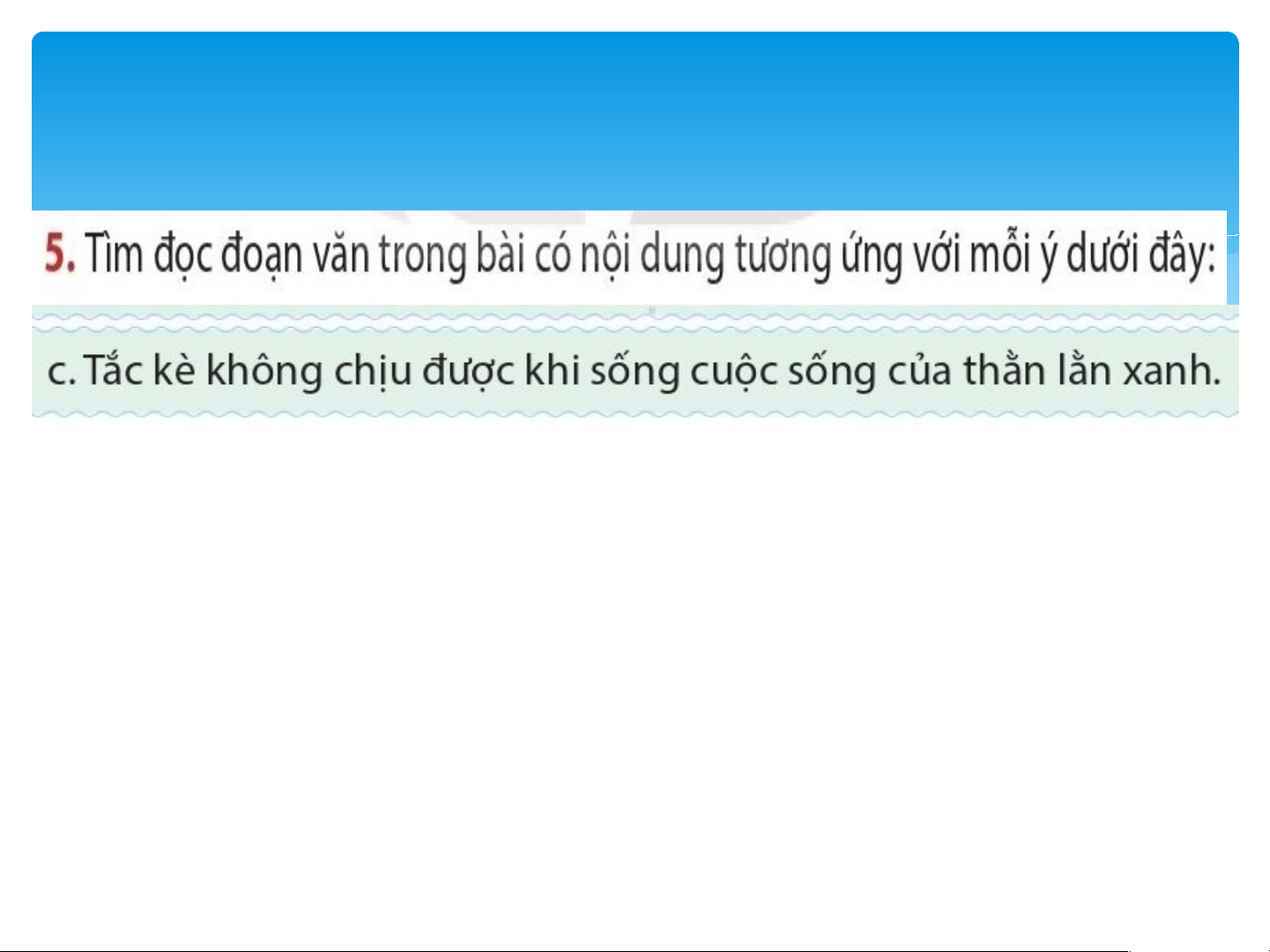 “Thằn lằn xanh nhận ra tay và chân của mình không bám dính như tắc kè.” ….. TRẢ LỜI CÂU HỎI