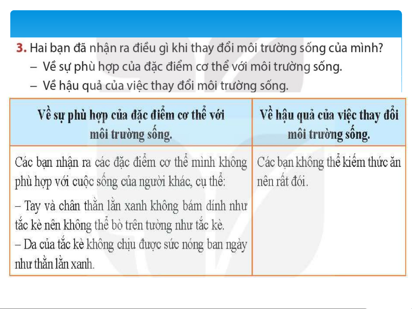 nên các bạn thấy thích thú với môi trường sống khác của mình.) TRẢ LỜI CÂU HỎI 3. TRẢ LỜI CÂU HỎI